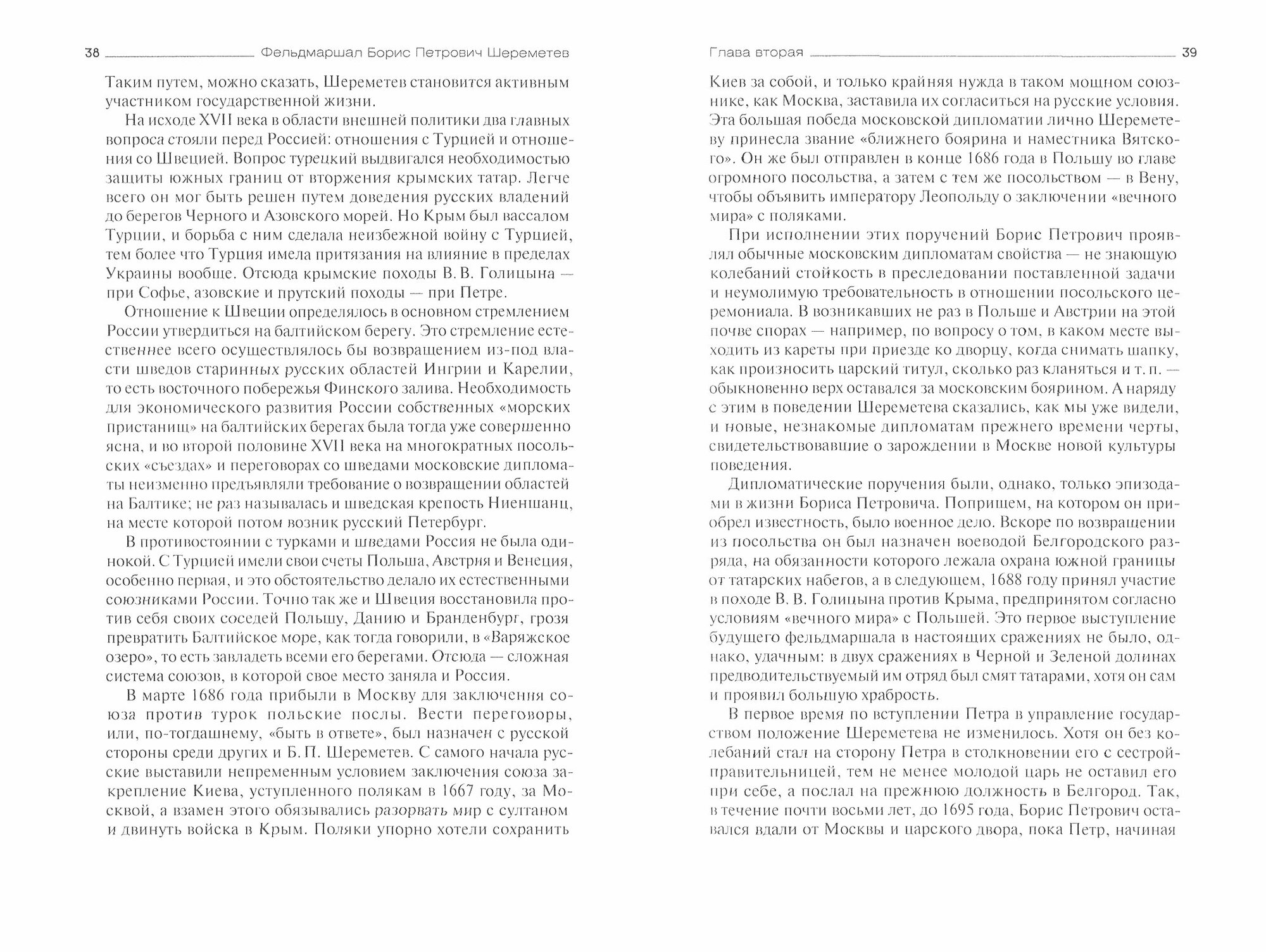 Историческая роль Бориса Петровича Шереметева не вызывает сомнений. Он был первым - в значении "главный" - генерал-фельдмаршалом, командовал армией в Северной войне и всегда находился в центре событий русской жизни. Набравшись европейского лоска и мало чем отличаясь в привычках от высшей европейской аристократии, он в то же время ярко и цельно отражал настроения старой московской знати, не раз вызывал недовольство царя и подозревался в причастности к делу царевича Алексея. Словом, можно с уверенностью сказать, что среди современников Петра I нет никого другого, кто бы представлял столько интереса с точки зрения наблюдений за Петровской эпохой, как Шереметев. Важно и то, что в значительной своей части сохранился фамильный архив Шереметевых, первым исследователем которого стал автор этой книги.
