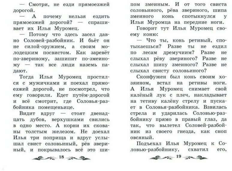 Илья Муромец - один из главных героев древнерусского былинного эпоса, защитник Русской земли, грозный для врагов, верный и справедливый - для своих. По легенде, страдал от паралича до 33 лет, но, получив силу от ангелов-странников, он становится героем, который верно служит князю Владимиру и храбро сражается с Соловьем-разбойником, Идолищем, татарами и другими врагами Руси. Илья Муромец бесстрашен, но и не рубит с плеча, он рассудителен, он никогда не обидит слабого или невиновного. Он знает об опасности, но не сворачивает с пути, смело вступает в бой с Соловьем-разбойником. Образ Ильи Муромца лишь отчасти сказочный персонаж, у него есть и исторический прототип.