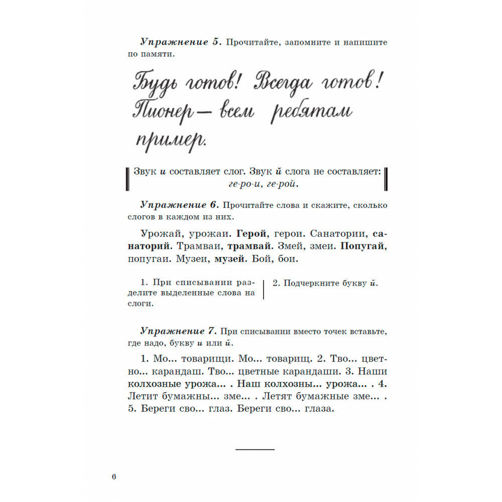 Это классический учебник. Такой, какие были раньше, по которым учились не то что наши родители, но наши бабушки и дедушки. Напечатан по макету 1953 года. Ничего лишнего: теория и практика (упражнения на закрепление материала). Не пестрит, не цветастый не красочный, не отвлекает от занятий. Не требует к себе дополнительных материалов (рабочих, проверочных тетрадей и прочей полиграфии для безбедной жизни издательств). Дизайн скромен, лаконичен. Содержание свидетельствует о времени создания учебника (здесь вы встретите пионеров, барабанщиков, детей в советской школьной форме и пр.). Учебник порадует не только ностальгирующих по тем временам читателей, но и тех, кому не шашечки, а ехать (со своей задачей учебник замечательно справляется, ребенок сможет осваивать материал даже самостоятельно, чего не скажешь о некоторых современных пособиях, которые без наставника-расшифровщика не одолеть).