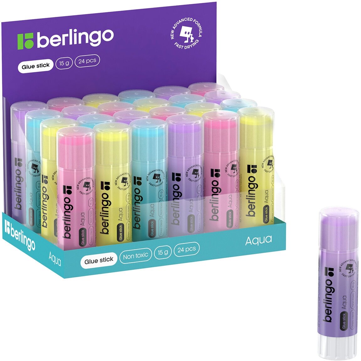 Клей-карандаш 15 грамм Berlingo "Aqua" цветной (FPp_15100)