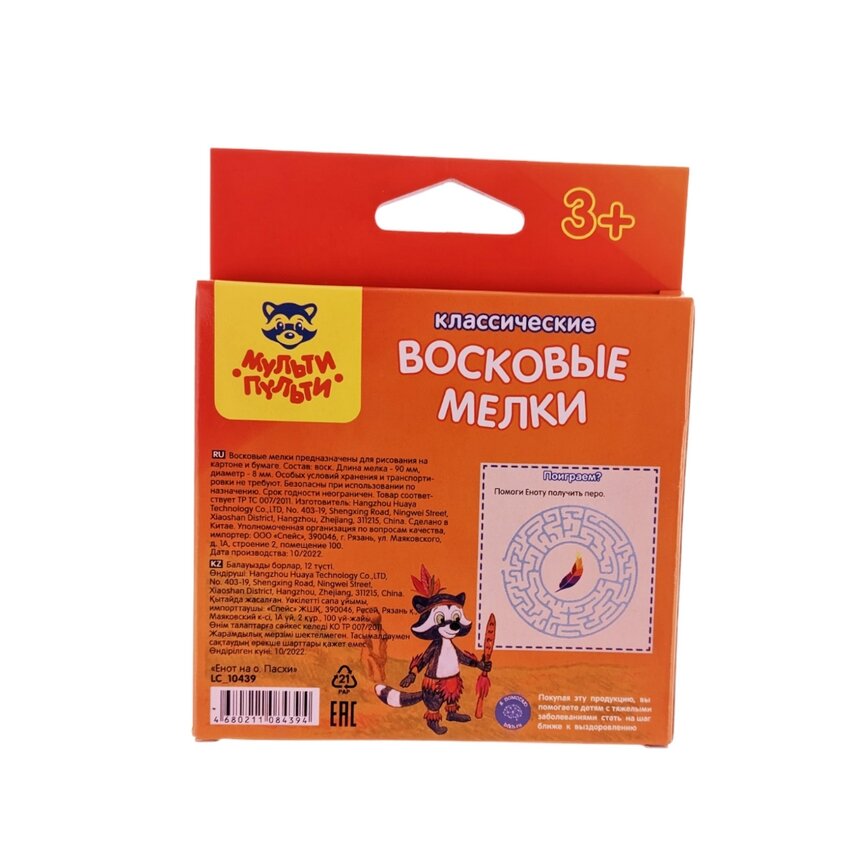 Мелки восковые 12 цветов "Енот на острове Пасхи" (LC_10439) Мульти-Пульти