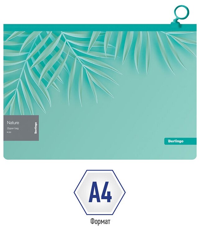 Папка-конверт пластиковая на молнии Berlingo "Nature" формата А4 с рисунком. Белый цвет внутренней поверхности. Надежная молния с мягким ходом и удобным бегунком-колечком. Быстрый доступ к содержимому. Изготовлена из высококачественного полипропилена с матовой текстурой поверхности "апельсиновая корка", на которой не видно отпечатков пальцев и мелких царапин. Предназначена для хранения и транспортировки документов. Вмещает до 100 листов. Толщина 180 мкм. Индивидуальный штрих-код на каждой папке-конверте на съемном стикере с информацией.