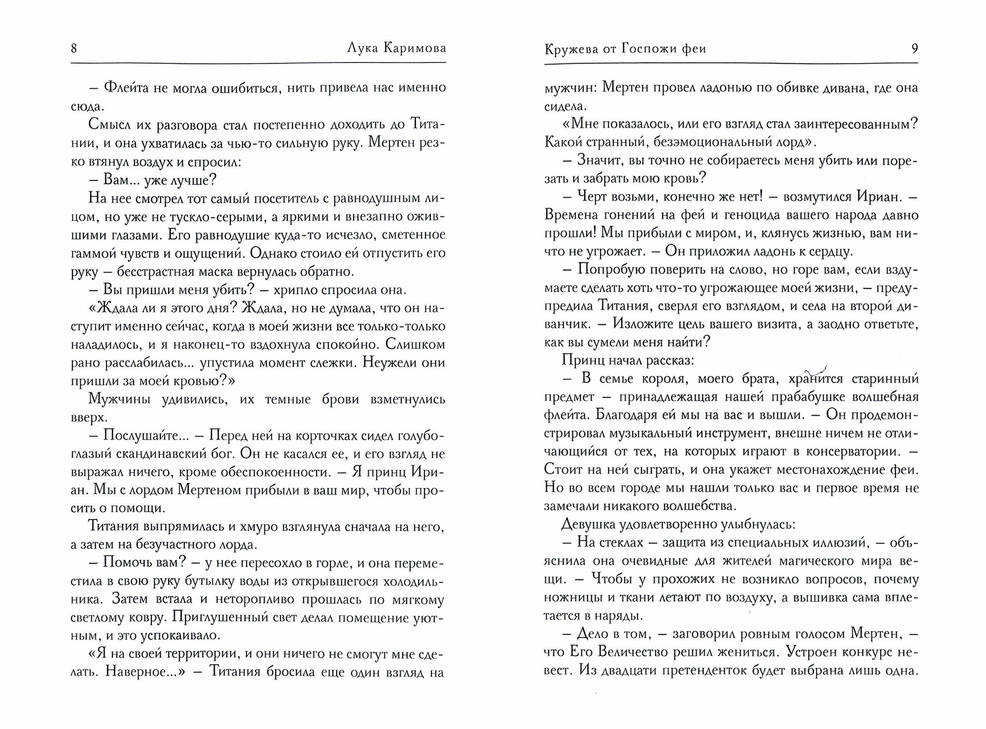 "Кружева..." - это не только история феи и советника, короля и его конкурсанток, но и мира в целом. Автор показывает нам и мироустройство, и действующие законы, и даже кусочек магической академии! Хотелось бы почитать и другие истории цикла. 10+. -