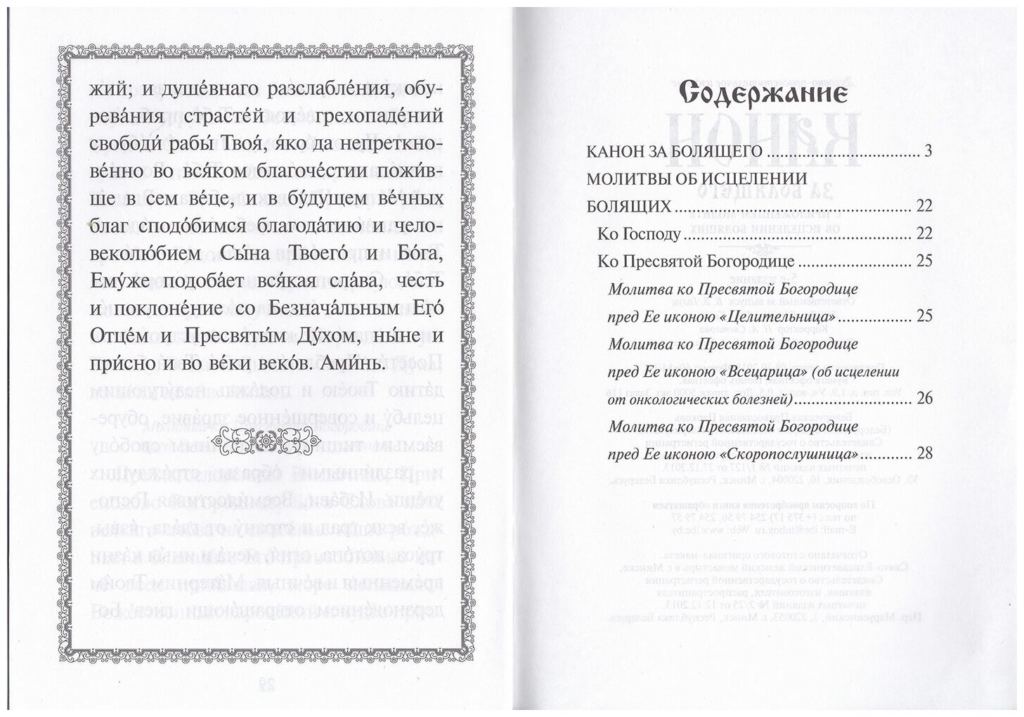 Канон за болящего с приложением молитв; Издательство Белорусского Экзархата, 2014