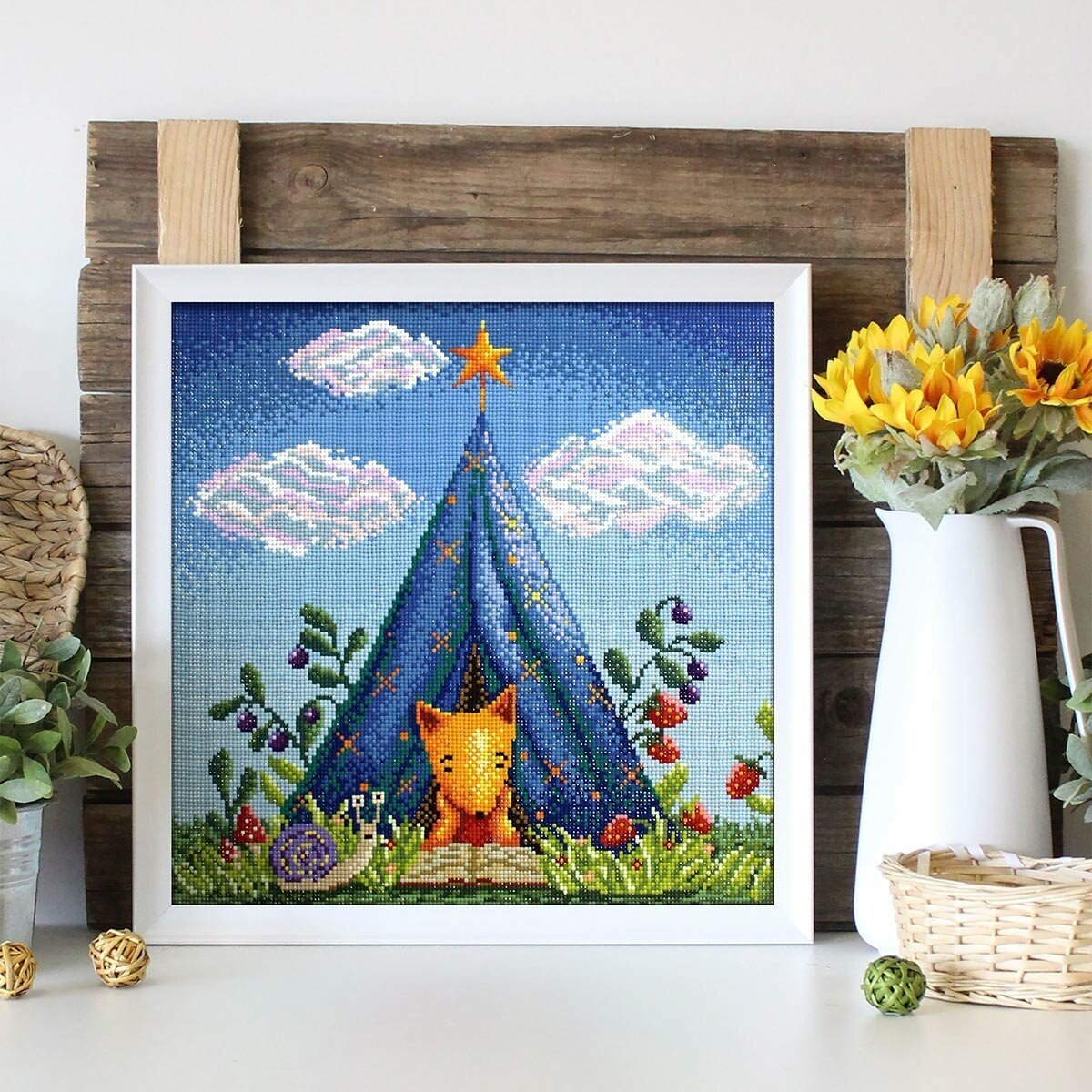 МС-124 Лисёнок в синей палатке. Стразы Brilliart (размер: 38х38 см)