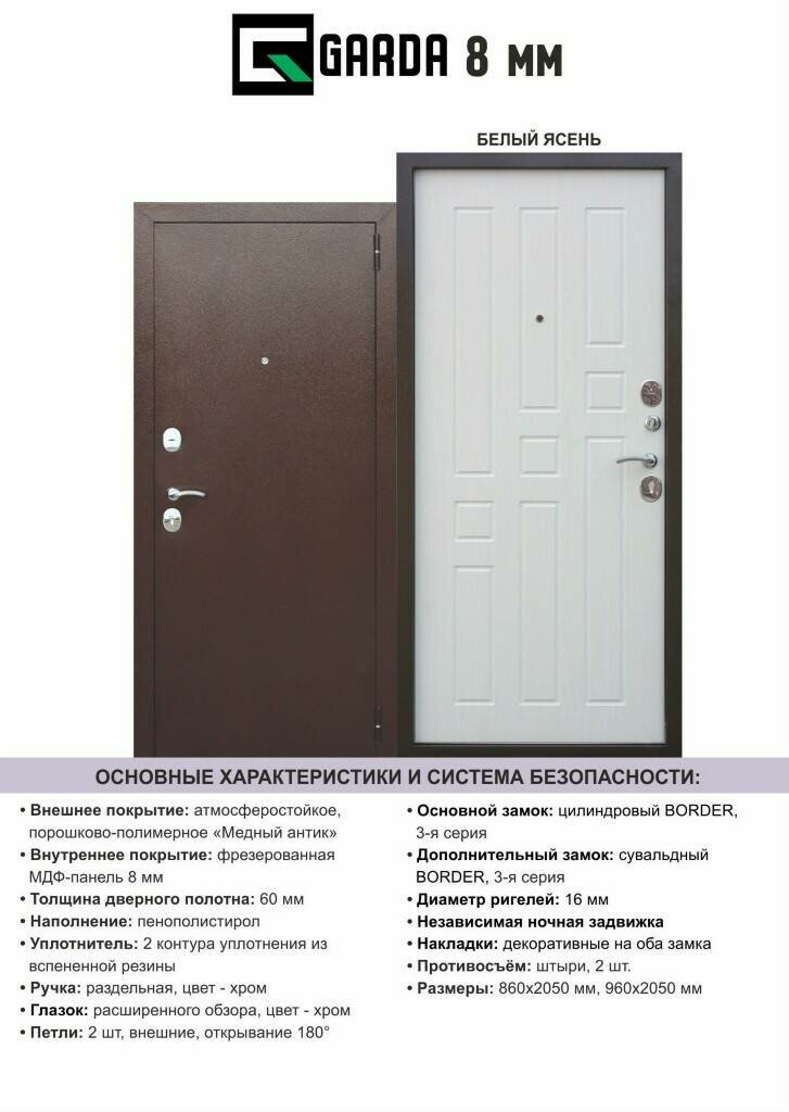 дверь входная garda 8мм 2050х860мм правая венге Ferroni