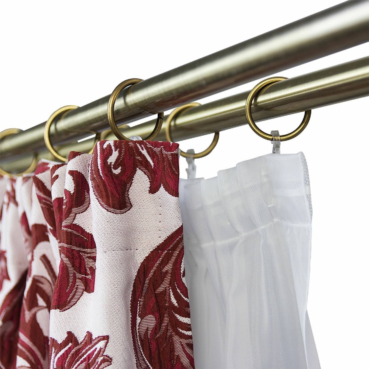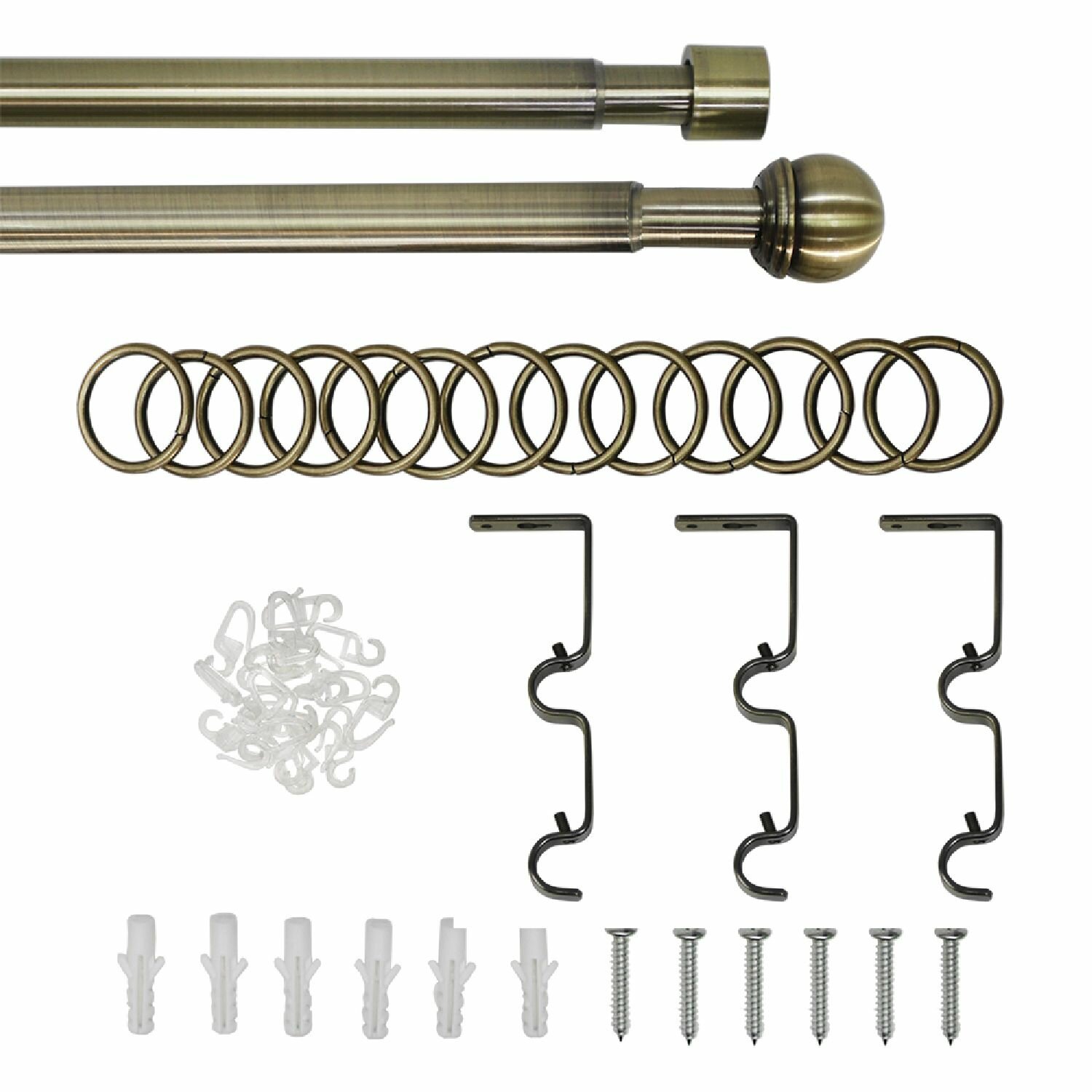 Карниз двухрядный раздвижной -конструкция с телескопическими штангами.Телескопическая штанга позволяет подогнать длину карниза под размеры оконного проема. Длина штанги регулируется в диапазоне от 160 до 320 см .Диаметр большей трубки 19 мм, диаметрменьшей трубки ? 16 мм.Комплект включает набор колец, крючков ,кронштейны для монтажа и наконечники.