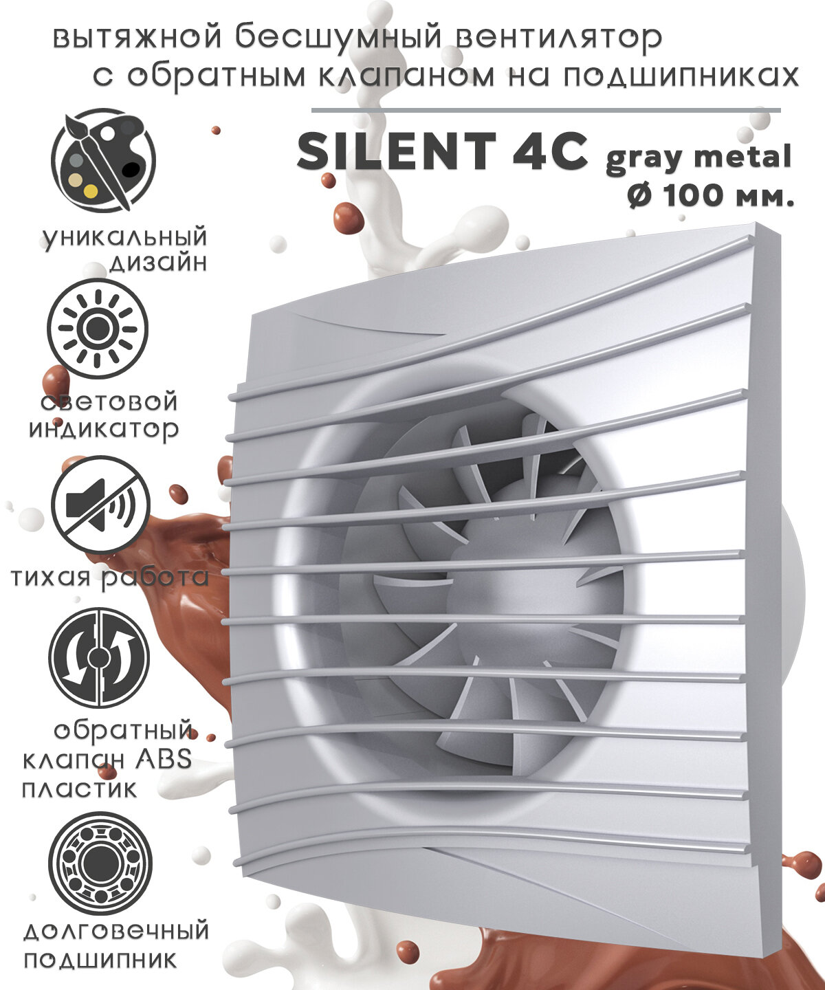 вентилятор вытяжной осевой накладной 100мм silent 4c chrome хром с обр.клап. diciti