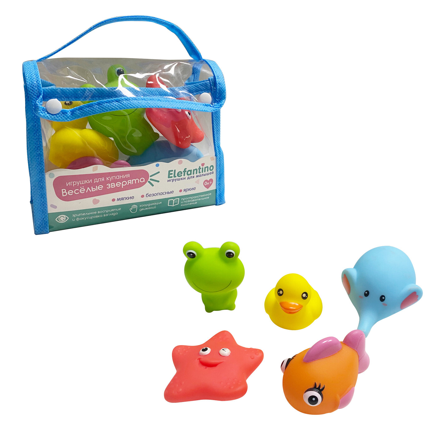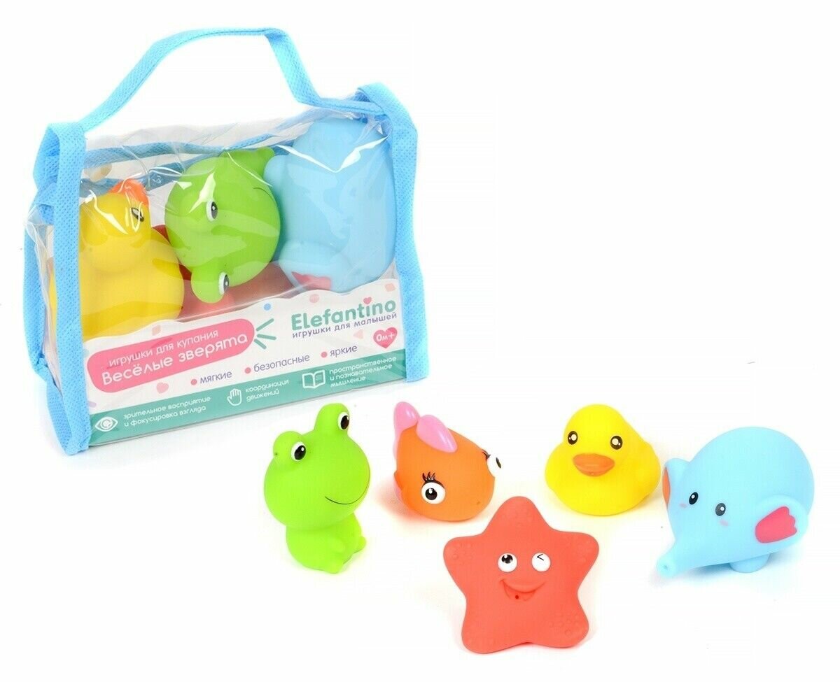Игрушка для купания Elefantino Животные брызгалки 5 штук в сумочке IT106296 Набор игрушек для купания Животные 5 шт. IT106296