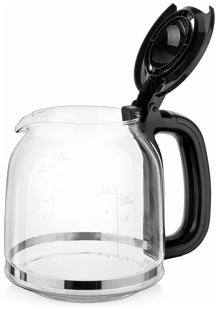 Размер съемного резервуара для воды – 1,5 л. Вам не нужно постоянно пополнять его, так как такого объема хватит на большое количество чашек кофе. Объем чаши для капельной кофеварки также 1.5 л.