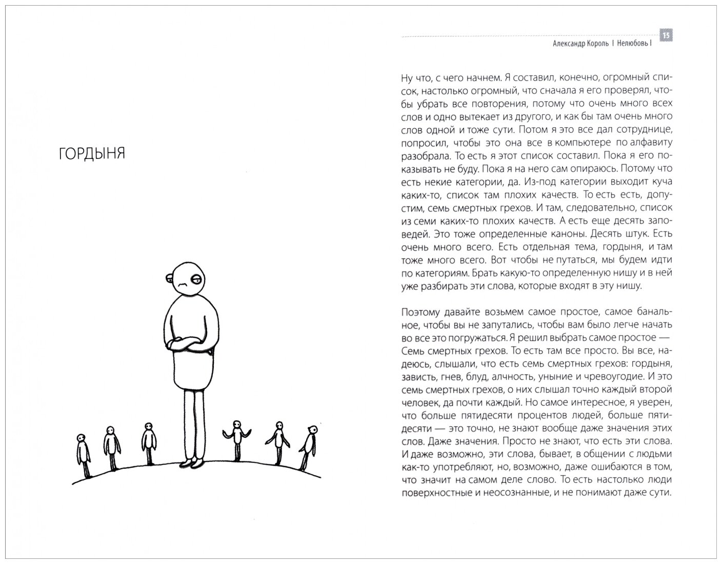 "...в двух томах я стараюсь разжевать людям... то... из чего состоит человек... как он устроен... что у человека есть ум... который состоит из 7 деталей... а точнее, из 7 животных инстинктов... а точнее, из 7 грехов... и также... я рассказываю о том... из чего состоит душа... что она тоже из 7 деталей... из 7 добродетелей.