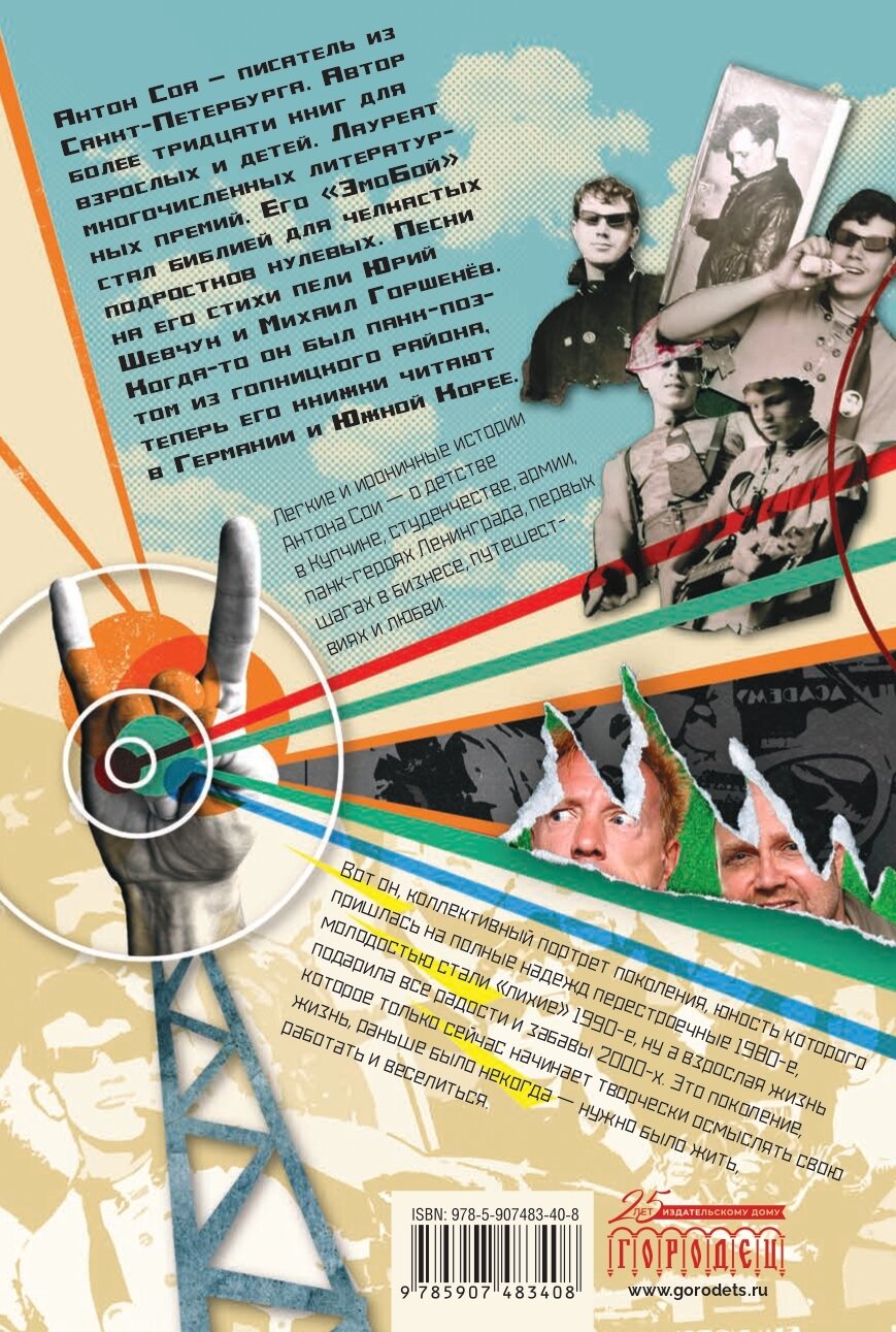 Сборник рассказов Антона Сои — коллективный портрет поколения, юность которого пришлась на полные надежд перестроечные 1980-е, молодостью стали «лихие» 1990-е, ну а взрослая жизнь подарила все радости и забавы 2000-х.