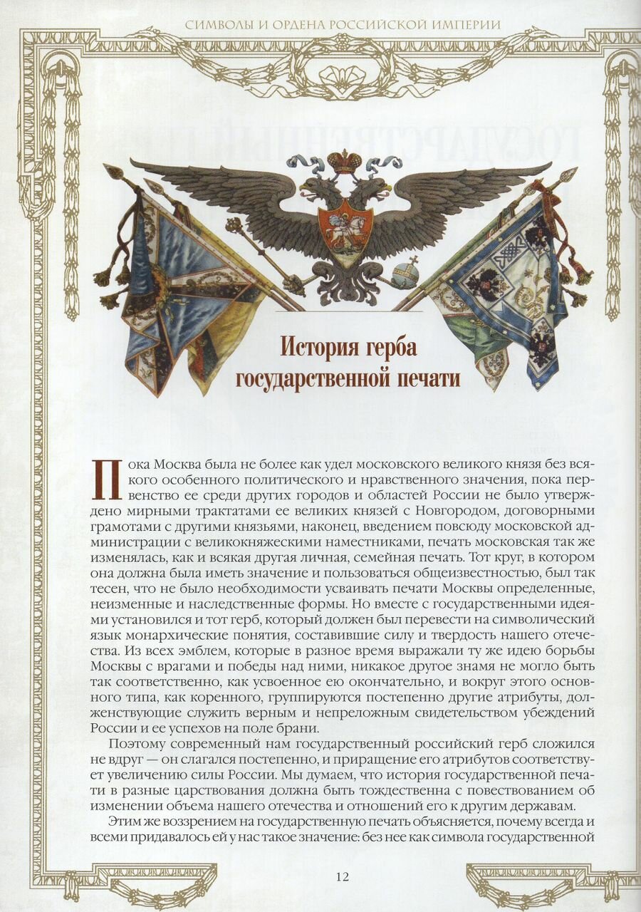 Герб, флаг, гимн, награды — эти и другие символы являются атрибутами любой державы, признаками государственного суверенитета страны, идентичности и самобытности ее народа. Эта книга — о символах и наградах могущественной Российской империи, многие из которых сохранились до наших дней, пережив и революции, и смены строя. О них рассказывают как историки, так и специалисты по геральдике, фалеристике, этнографии и даже музыковедению.Книга будет интересна любому читателю, став своего рода ключом ко всей русской истории и культуре послепетровского времени.Особую ценность имеет часть книги, посвященная орденам Российской империи — она основана на уникальных материалах из архива Капитула российских императорских и царских орденов.История символов и наград России прослеживается со времен первых Рюриковичей до начала XX века.Использовавшиеся при первых публикациях черно-белые рисунки в данном издании заменены более чем 200 полноцветными, воспроизведенными с редчайших рукописных и печатных книг.