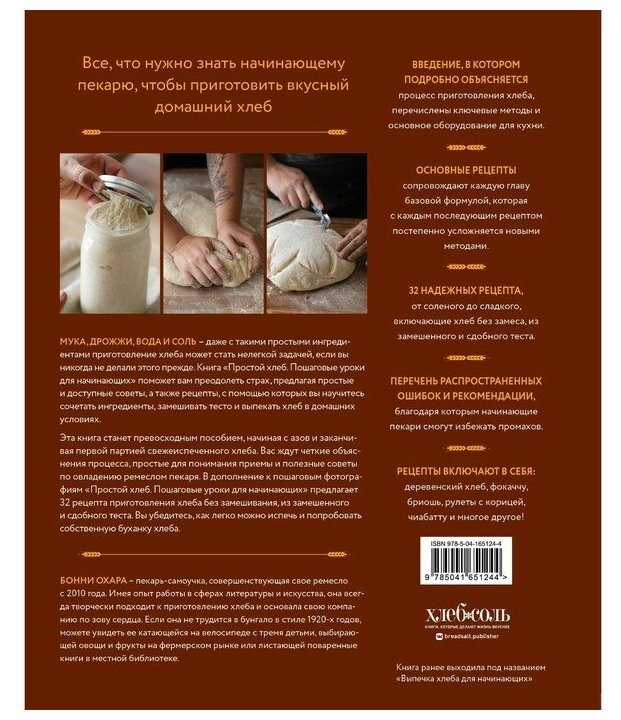 В любом процессе самый трудный — это первый шаг. Хлебное дело — не исключение. Многие авторы готовы подолгу рассказывать романтические истории про учебу в Le Gordon Blue и о том, какой хлеб они пробовали на неведомых берегах, забывая рассказать о главном — как же читателю начать печь самому, как выбрать муку, как правильно взвесить и отмерить нужные ингредиенты, как вырастить закваску, почему так важно складывание теста для легких хлебов, как выбор дрожжей влияет на конечный результат. Читатель вместе с автором Бони Охара пройдет по трудным местам этого процесса и сможет уже сегодня испечь свой первый хлеб. Весь материал книги собран с учетом того, что даже самый неопытный кулинар сможет уже завтра сказать: я сам пеку хлеб!