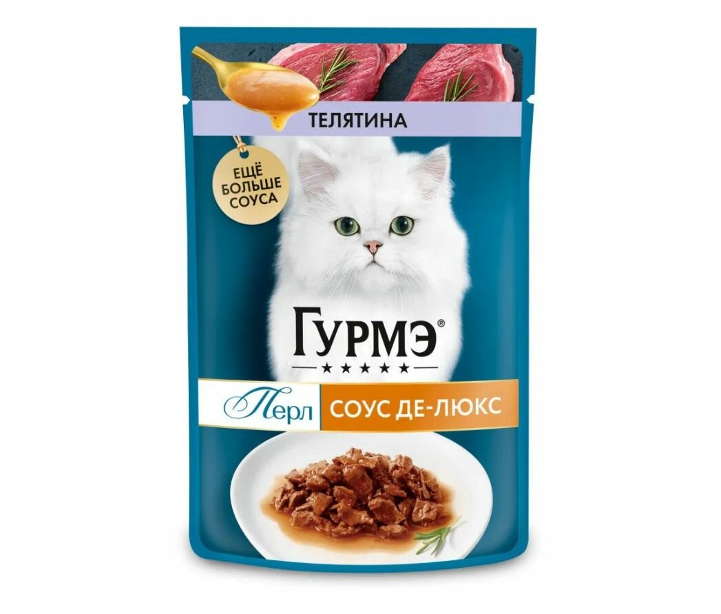Влажный корм для кошек Gourmet Перл Соус Де-люкс с телятиной в роскошном соусе 75г