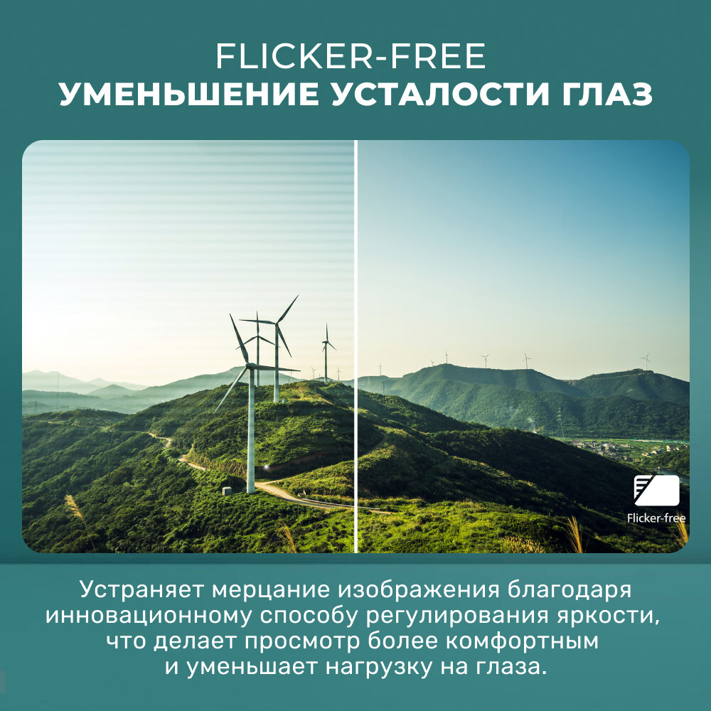 Технология Adaptive-Sync обеспечивает плавное воспроизведение видео. Такие функции, как антиблик, режим LowBlue и предотвращение мерцания, снизят нагрузку на глаза.