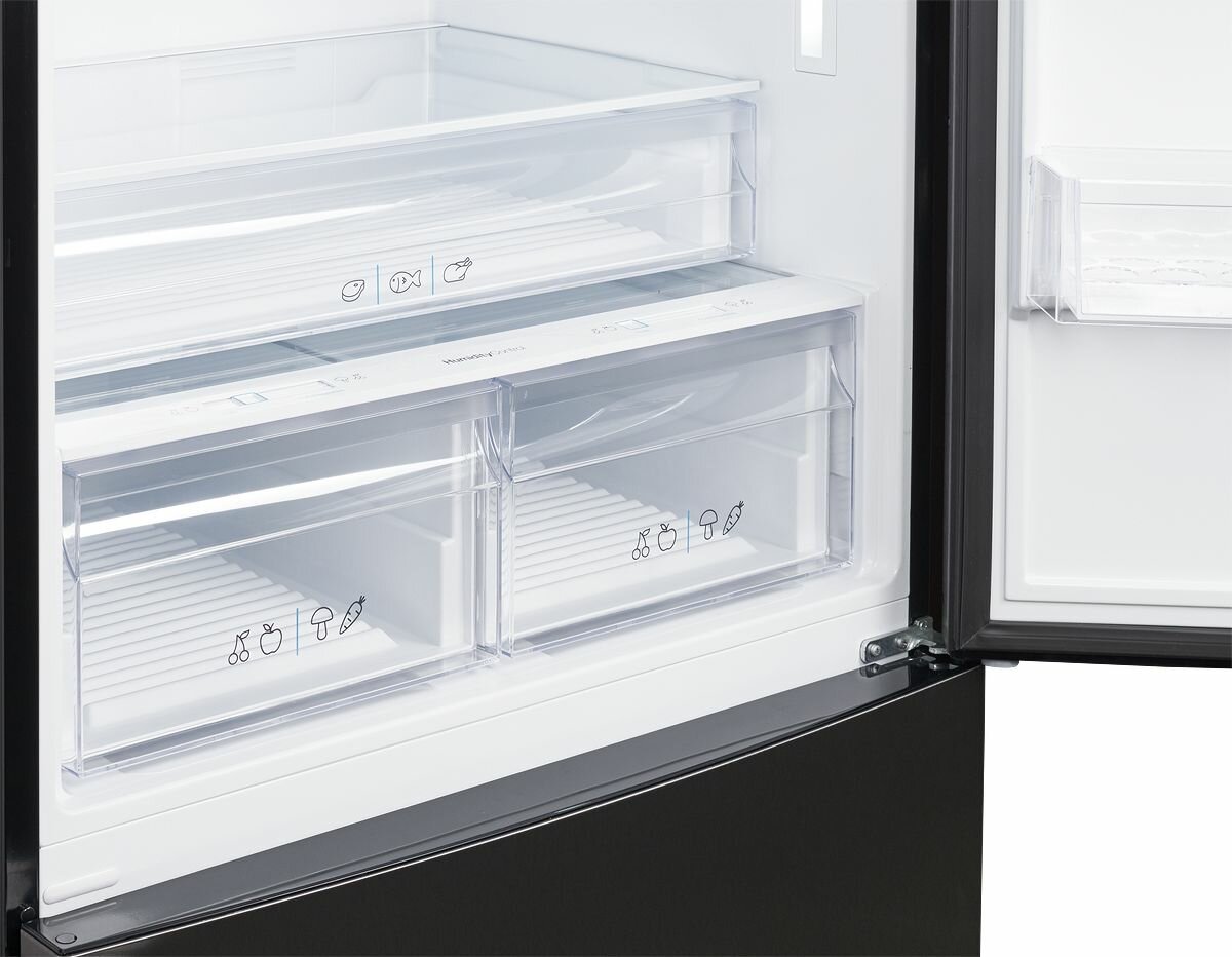 Великолепный черный цвет этого холодильника придаст вашей кухне шик и элегантность. Особый черный оттенок нержавеющей стали добавляет особый акцент в дизайн интерьера.