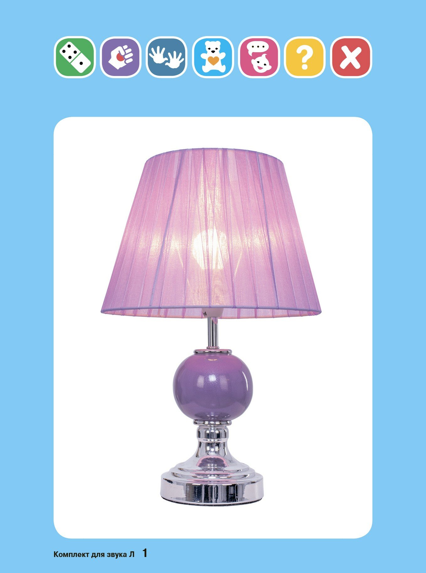 Новинка от авторов карточек "Запускаем речь"! Яркая удобная коробка обеспечит комфорт и порядок! В комплект входит 36 карточек размером с открытку. На каждой карточке есть картинка, название которой начинается на звук Л. На обороте каждой карточки даны слова, словосочетания и предложения для автоматизации звука Л. Также в комплекте есть игровые поля для игр со всеми карточками. На вкладыше даны описания игр, а также артикуляционная гимнастика для постановки звука Л.