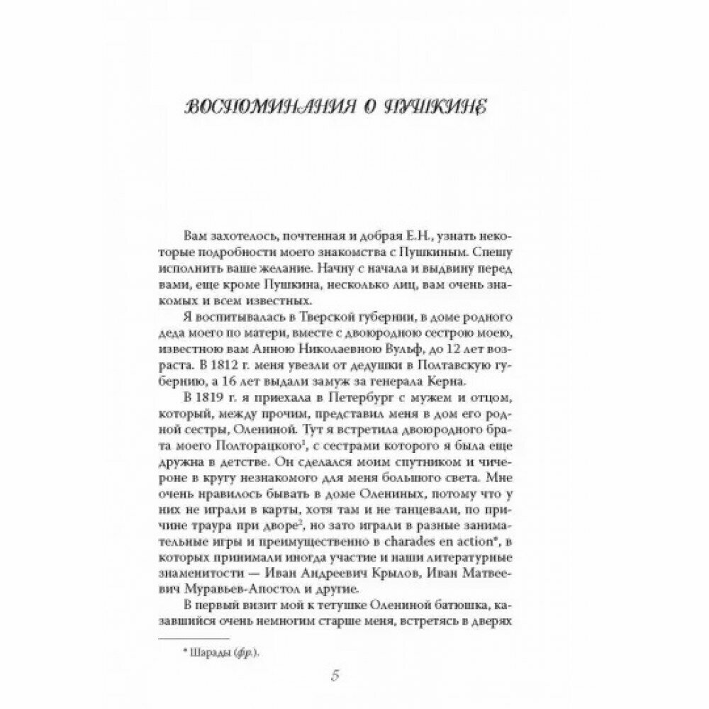 Имя Анны Петровны Керн обессмертил Пушкин своим лирическим шедевром "Я помню чудное мгновенье". Общество этой незаурядной, редкого обаяния женщины, любил Пушкин и Глинка, Дельвиг и Веневитинов.… Какой она была, реальная Анна Керн, из рода состоятельного чиновного дворянства, в замужестве Маркова-Виноградская? Каким она видела боготворившего ее русского гения? Какие чудные мгновенья испытала в жизни, не всегда благосклонной к ней? Как нельзя лучше об этом свидетельствуют страницы ее собственных воспоминаний и дневников, которые читаются как увлекательный роман.