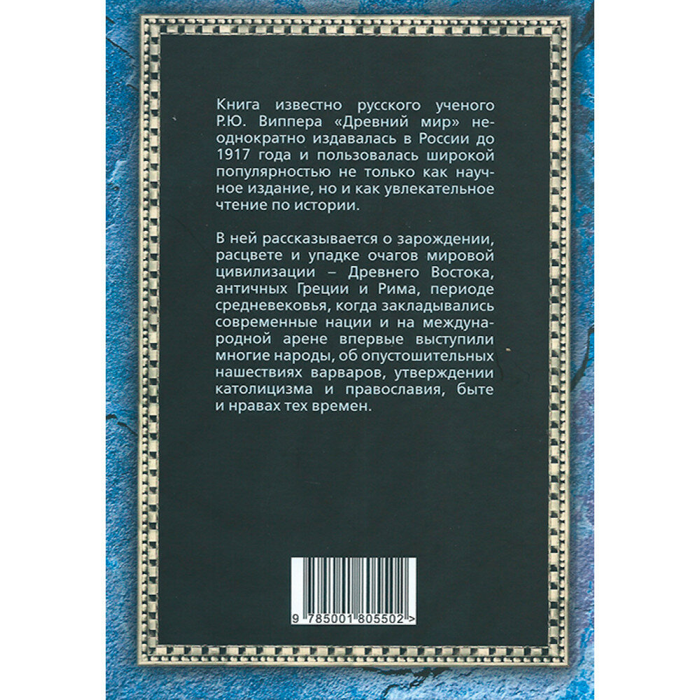 Книга известного русского ученого Р.Ю. Виппера "Древний мир" неоднократно издавалась в России до 1917 года и пользовалась широкой популярностью не только как научное издание, но и как увлекательное чтение по истории. В ней рассказывается о зарождении, расцвете и упадке очагов мировой цивилизации - Древнего Востока, античных Греции и Рима. Автор показывает все стороны жизни древних народов: их хозяйство, политику, военные походы, культуру и верования.