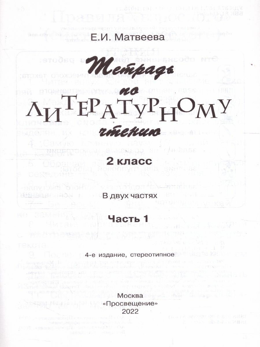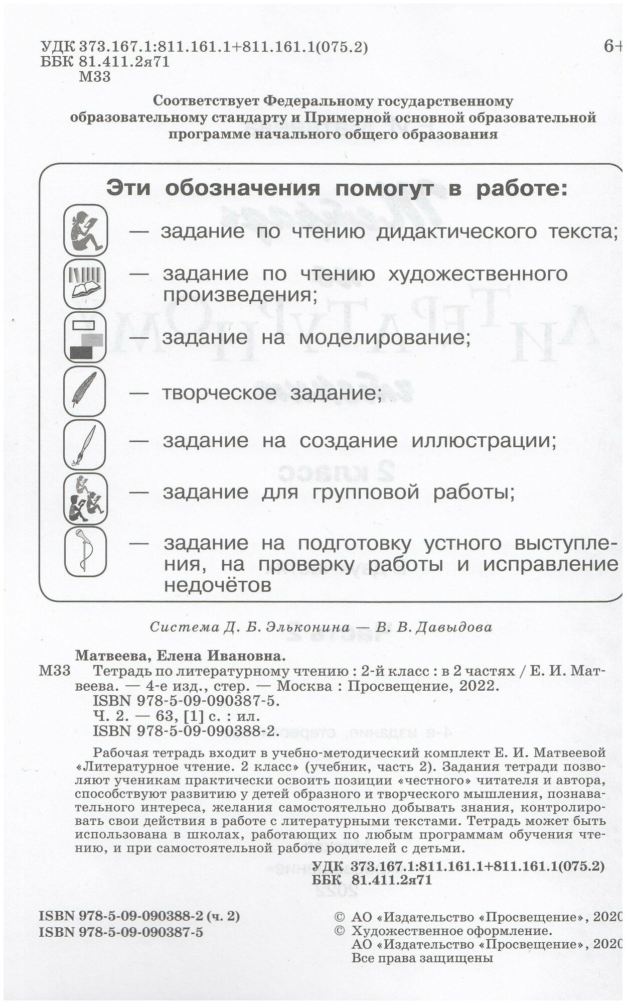 Тетрадь по литературному чтению 2 для начальной школы 2 класс (Матвеева Елена Ивановна); БИНОМ. Лаборатория знаний, 2022