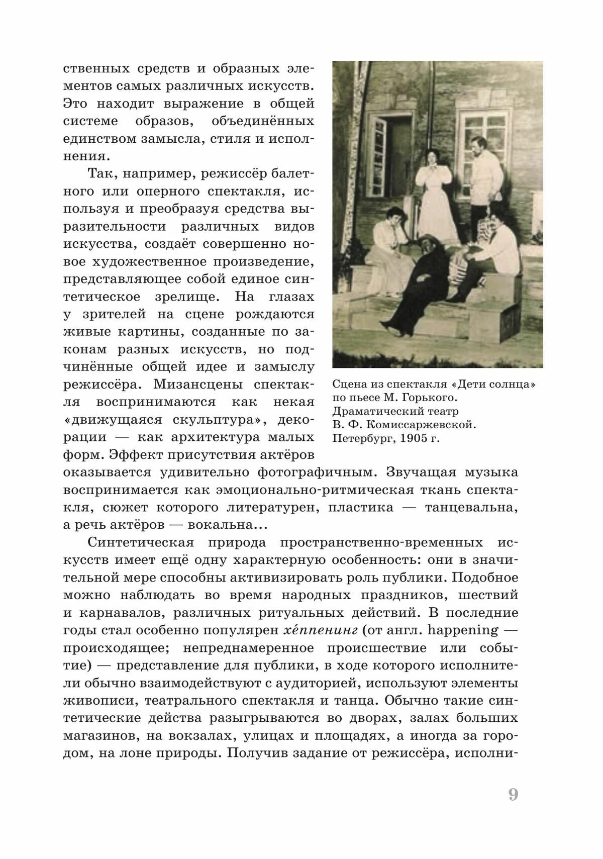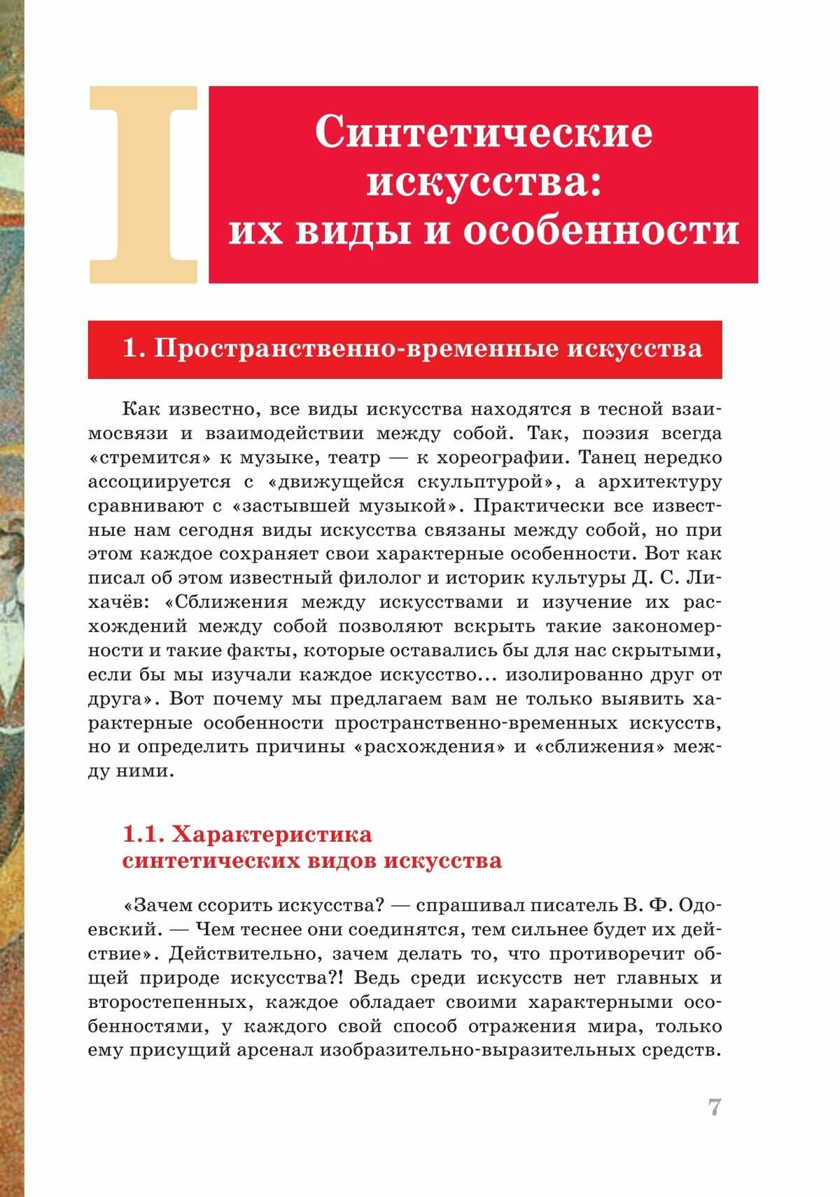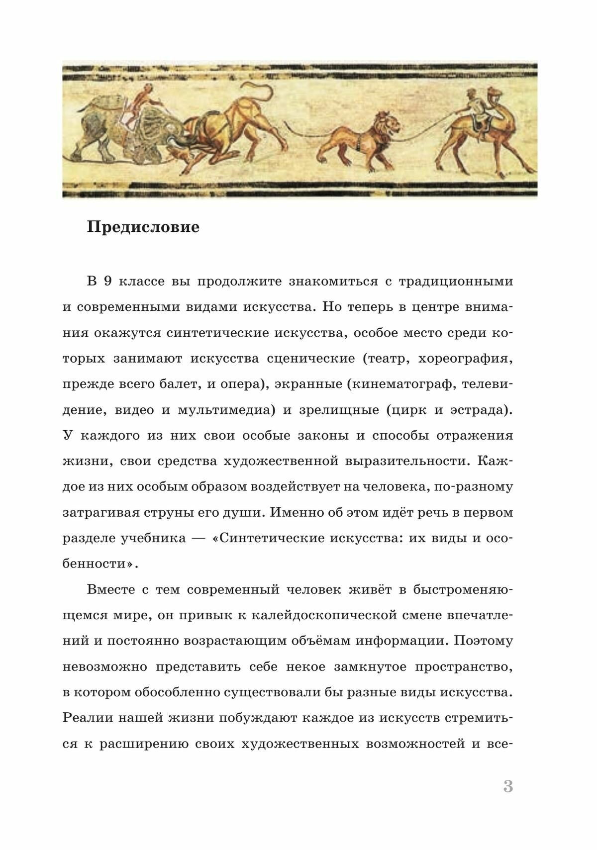 Учебник завершает авторскую линию Г.И. Даниловой по искусству для основной школы. В нём рассматриваются особенности отдельных видов синтетических искусств, а также процессы их взаимовлияния и взаимообогащения. Содержит обширный иллюстративный материал. Методический аппарат включает следующие рубрики: «Вопросы и задания для самоконтроля», «Творческая мастерская», «Темы проектов, презентаций или сообщений». В заданиях приведены ссылки на интернет-ресурсы. В конце учебника помещён список рекомендуемой литературы и интернет-ресурсов. Учебник написан в соответствии с Федеральным государственным стандартом основного общего образования и авторской программой курса, включён в Федеральный перечень.