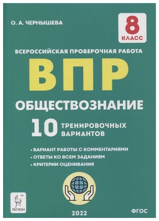 Обществознание ВПР 8-й класс 10 тренировочных вариантов учебно-методическое пособие (Чернышева Ольга Александровна); Легион, 2022