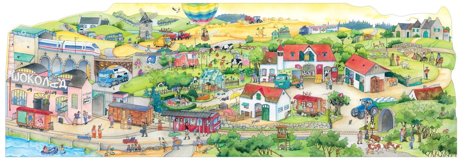 Замечательный виммельбух со сквозной вырубкой на страницах и с разворачивающимися страницами-клапанами, на которых открывается много интересного. Яркое рисование, интересные и понятные детям ситуации идеальная книга для разглядывания, чтения и обсуждения.