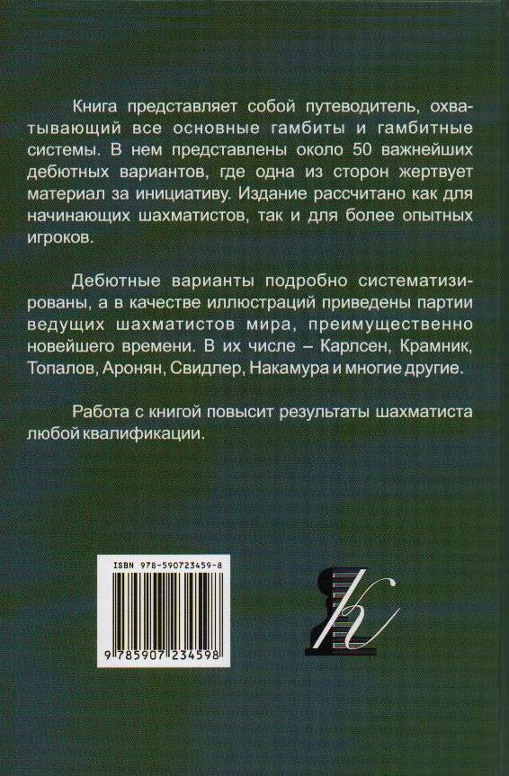 Книга представляет собой путеводитель, охватывающий все основные гамбиты и гамбитные системы. В нем представлены около 50 важнейших дебютных вариантов, где одна из сторон жертвует материал за инициативу. Материал рассчитан как для начинающих шахматистов, так и для более опытных игроков.