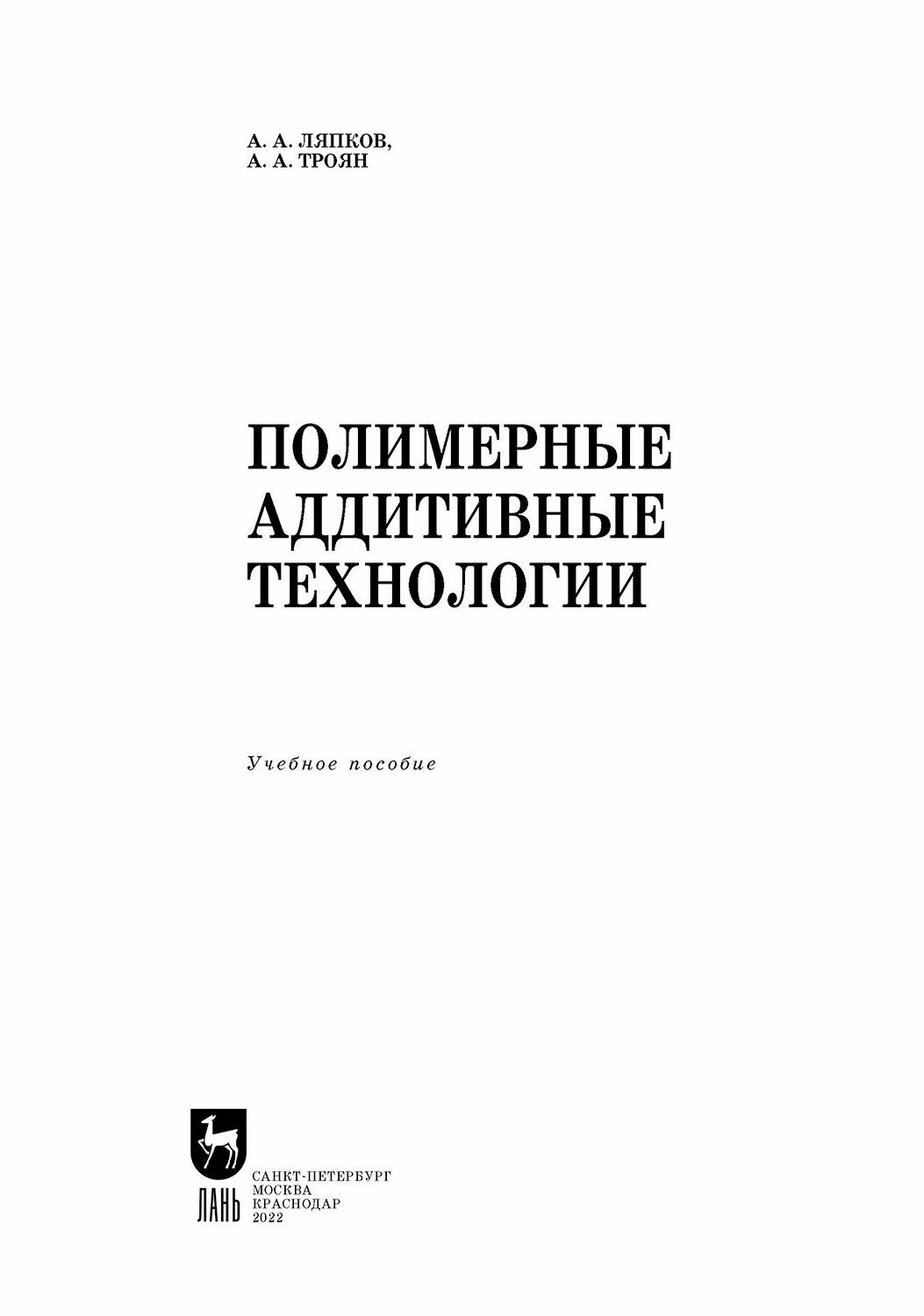 Полимерные аддитивные технологии Учебное пособие (Ляпков Алексей Алексеевич, Троян Анна Алексеевна); Лань, 2022