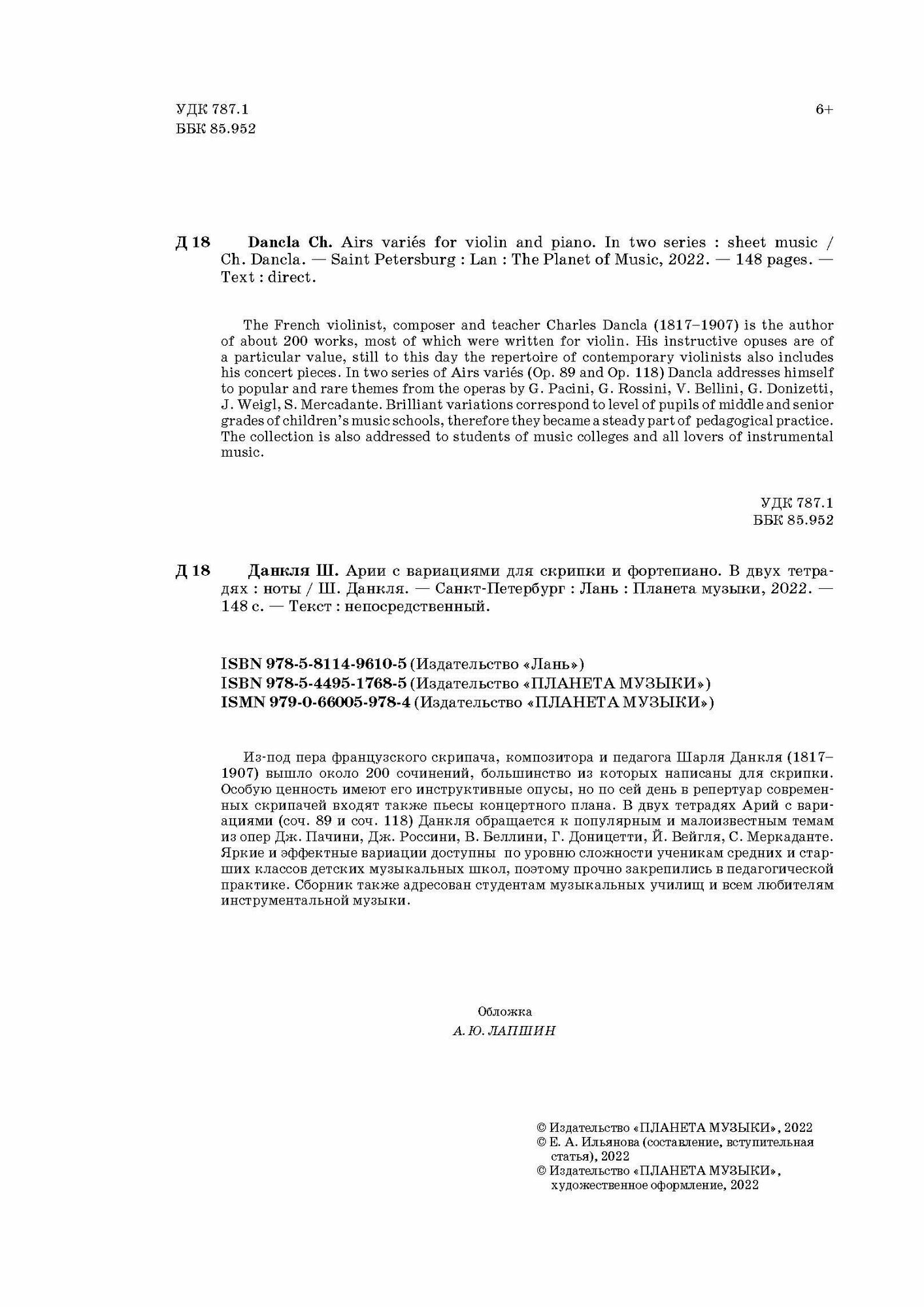 Арии с вариациями для скрипки и фортепиано В двух тетрадях Ноты (Данкля Шарль); Планета музыки, 2022
