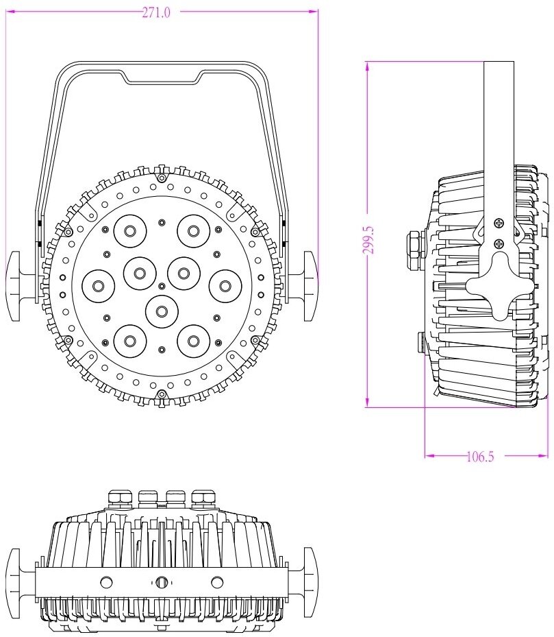 Количество светодиодов: 9 шт. по 10 Вт RGBWA мультичип