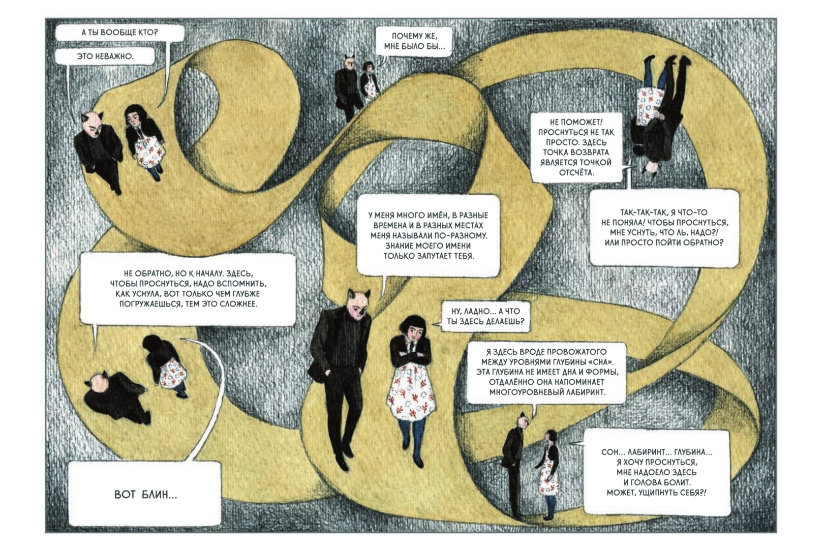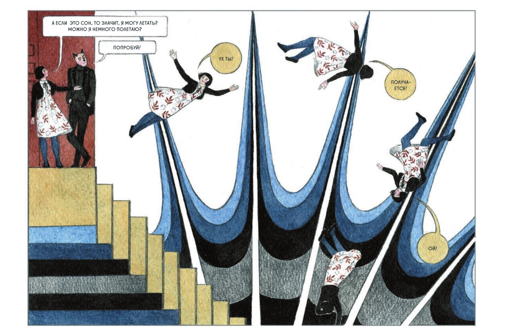 Невероятной красоты комикс. Очень напоминает кэрроловскую Алису, только более модерновую и меланхоличную. История-размышление. На втором развороте очень понравилось стихотворение. Кажется таким знакомым, но ссылки на автора нет. Неужели оно тоже авторства Екатерины? Может, кто знает?)
