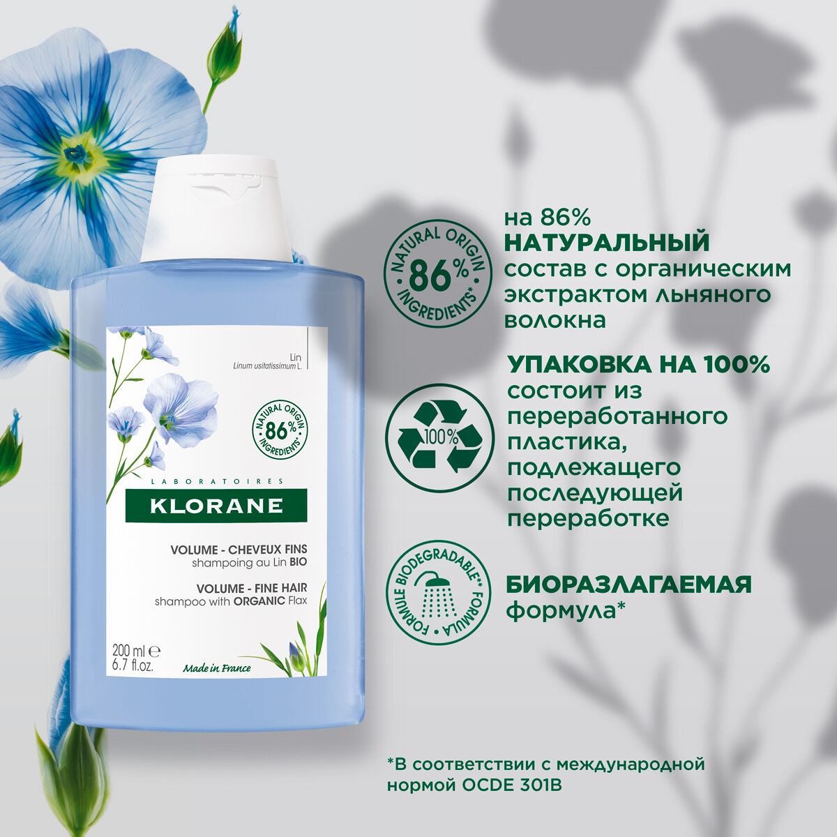 Klorane Шампунь с органическим экстрактом льняного волокна 200 мл (Klorane ) (ЭХ99989424857)