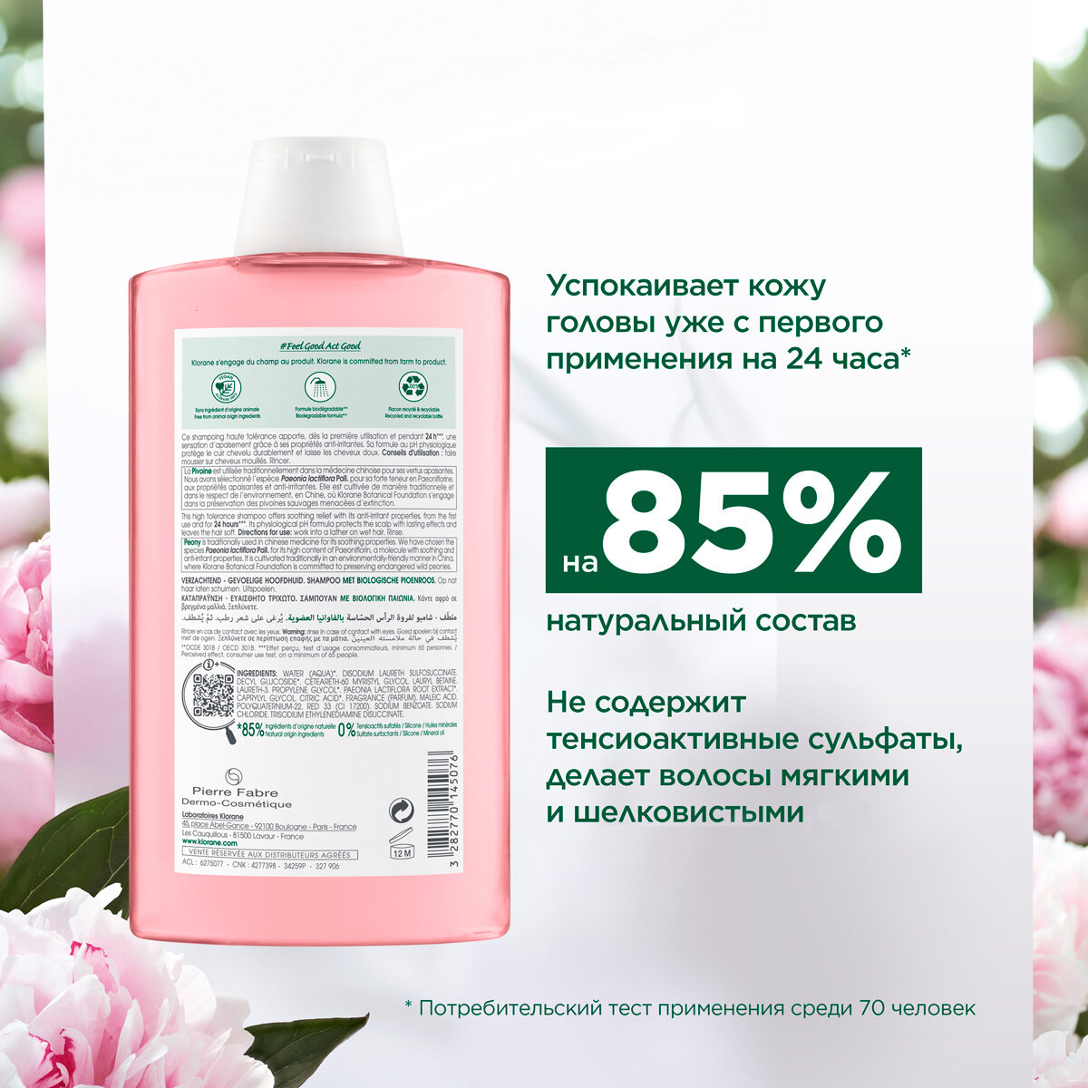 Шампунь Клоран с экстрактом пиона мягко очищается чувствительную и раздраженную кожу головы и волосы, делая их мягкими, шелковистыми и послушными. Понравился нежный аромат пиона, который успокаивает и обеспечивает хорошее настроение. Шампунь успокаивает и увлажняет кожу головы. Рекомендую