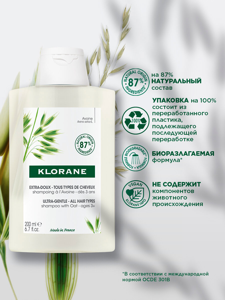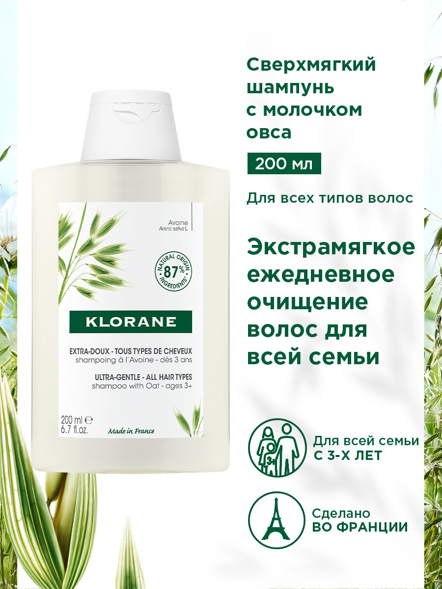 Klorane Сверхмягкий шампунь для всех типов волос с молочком овса 200 мл (Klorane ) (ЭХ99989425752)