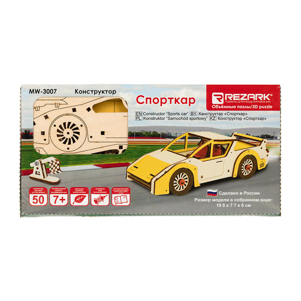 ?Сборная модель из фанеры REZARK "3D Пазл. Спорткар" Сборная модель Пазл 3D Спорткар