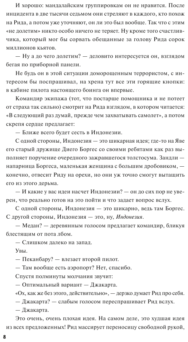 - Все 300+ страницы, а если серьёзно - очень грамотный текст, уместный юмор и просто вайбовая атмосфера. После прочтения, как и остальным, мне тоже захотелось в Джакарту)