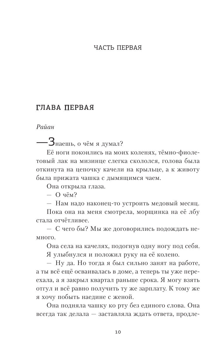 Я здесь одна посреди темного леса с человеком, которому, как я думала, могу доверять. Мое сердце бешено колотится, и нет никого, кого я могла бы позвать на помощь. У алтаря Райан обещал любить меня, пока смерть не разлучит нас. Но он не говорил, как скоро это произойдет…