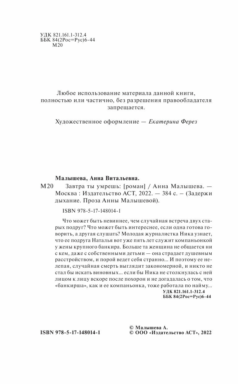 Книга: Завтра ты умрешь (Анна Малышева); ИЗДАТЕЛЬСТВО "АСТ", 2022