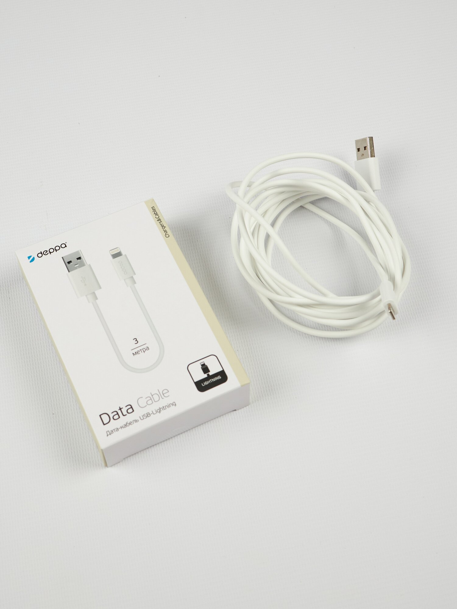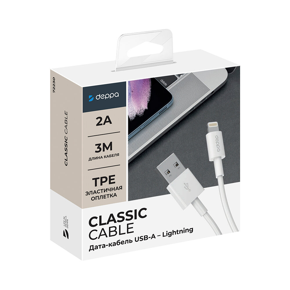 Дата-кабель Deppa 72230 USB-Lightning 3м White
