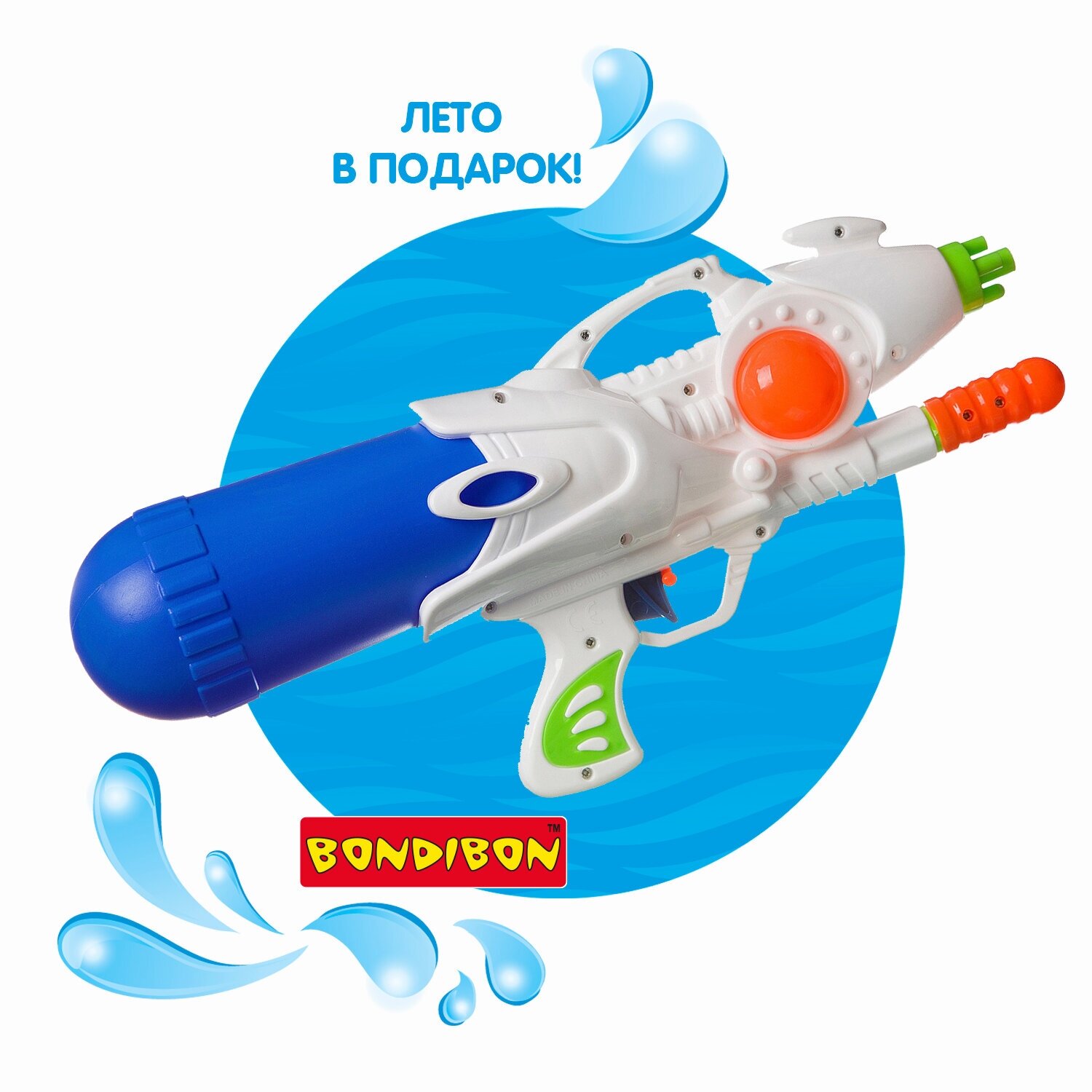 Водяное игрушечное Bondibon Наше лето Бело-синий Водный пистолет с помпой Наше лето 21.5 см ВВ2848
