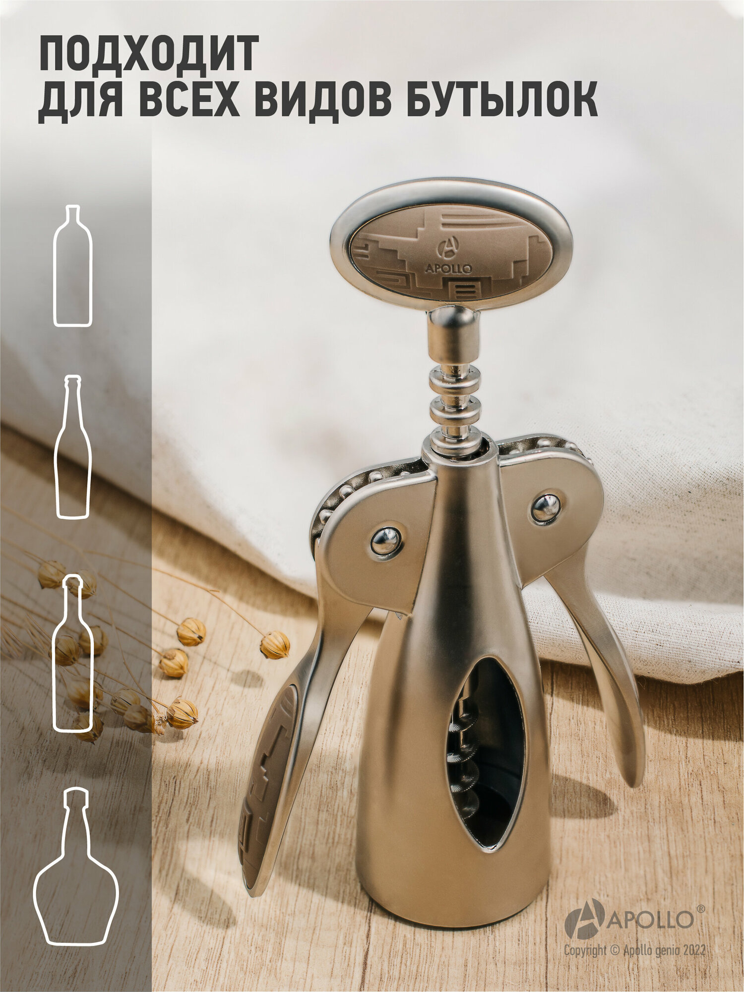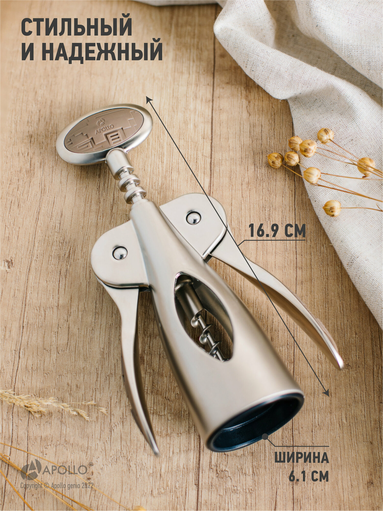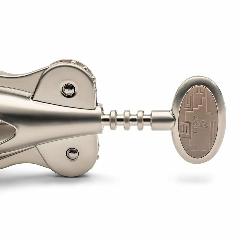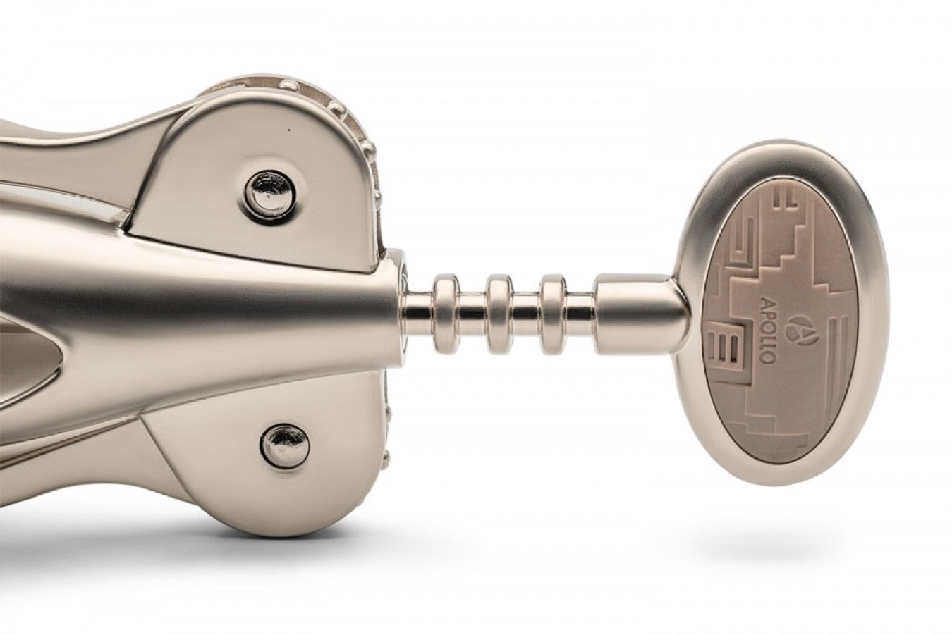 Штопор Apollo DaVinci позволяет извлекать пробки из бутылок в несколько простых действий. Благодаря конструкции с двумя рычагами и винтовым механизмом, процесс извлечения пробки не занимает много времени. Данное изделие изготовлено из цинкового сплава, что придает устойчивость к повреждениям и деформации. Материал также отличается хорошими антикоррозийными свойствами, поэтому штопор прослужит длительное время.