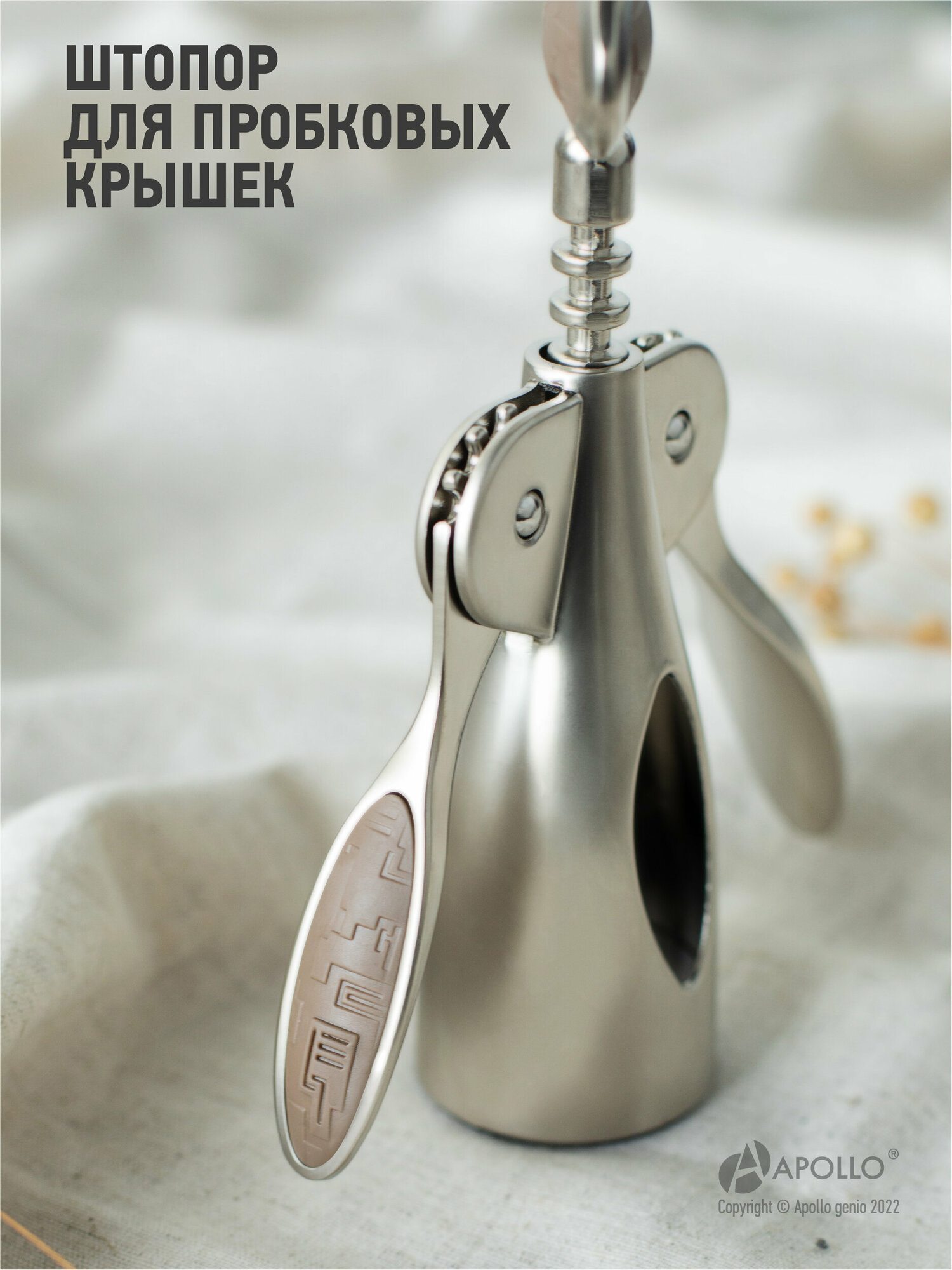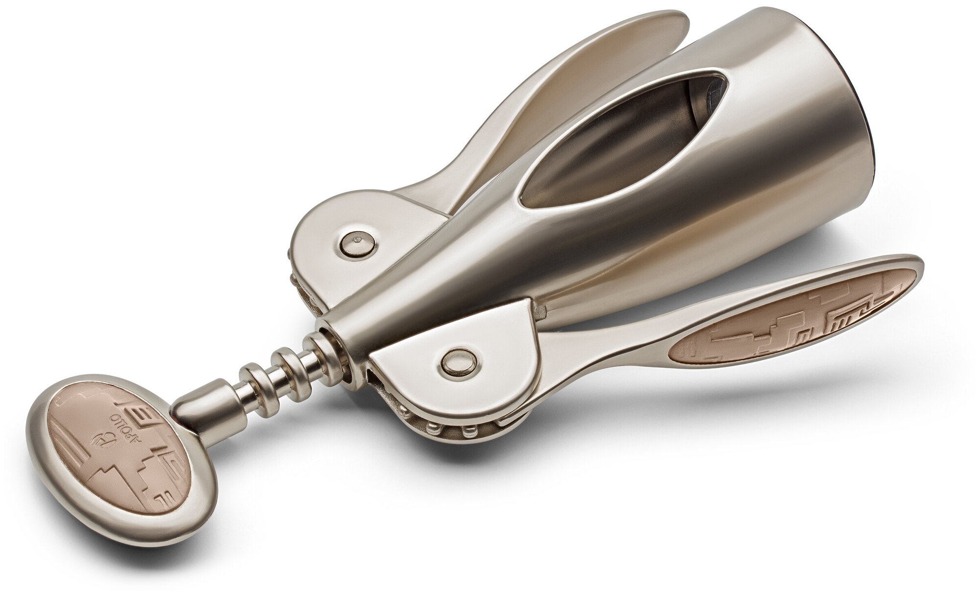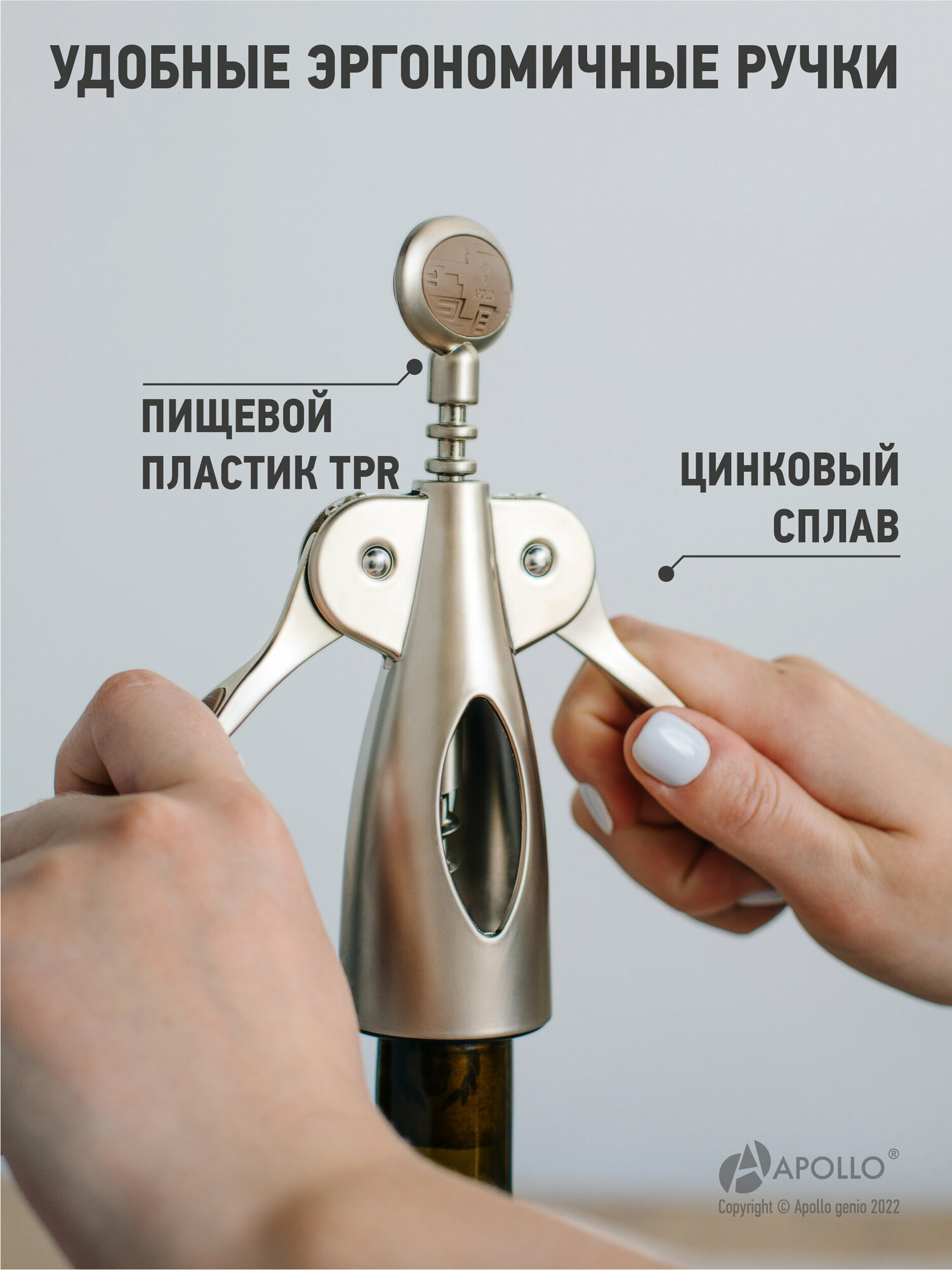 Штопор Apollo DaVinci позволяет извлекать пробки из бутылок в несколько простых действий. Благодаря конструкции с двумя рычагами и винтовым механизмом, процесс извлечения пробки не занимает много времени. Данное изделие изготовлено из цинкового сплава, что придает устойчивость к повреждениям и деформации. Материал также отличается хорошими антикоррозийными свойствами, поэтому штопор прослужит длительное время.