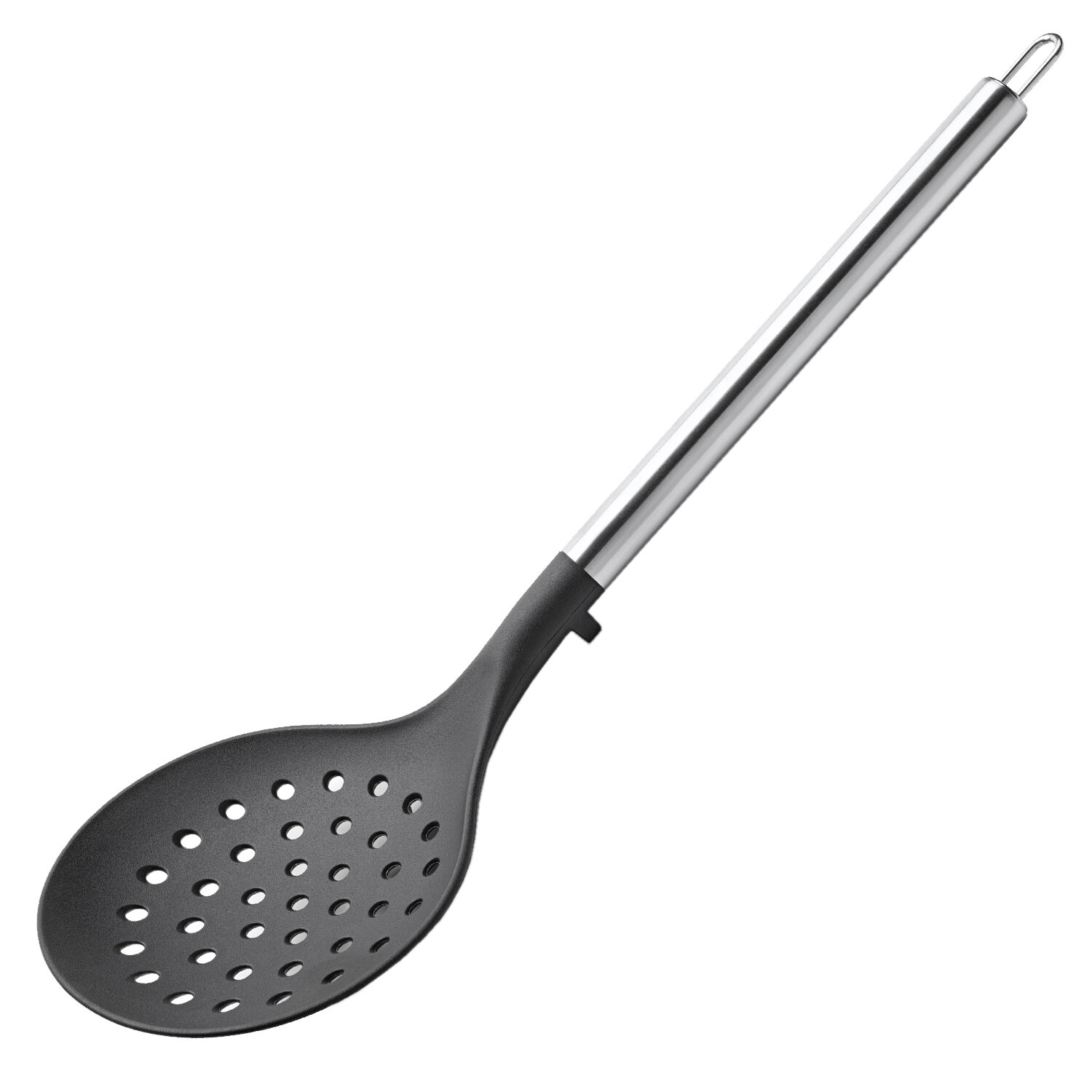 Шумовка предназначена для извлечения продуктов из супов и бульонов, а также для подачи готовых блюд. Прорези на шумовке позволяют стекать излишкам масла, соуса или жидкостей. Изделие прекрасно подойдет для посуды с антипригарным, тефлоновым или керамическим покрытием. Рабочая часть изделия выполнена из пищевого пластика и выдерживает температуру до 220?. Можно мыть в посудомоечной машине.