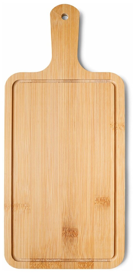 Доска предназначена для разделывания рыбы, мяса, нарезки овощей, фруктов, колбас, сыра и хлеба. Доску можно использовать для сервировки различных продуктов и блюд, а также в качестве подставки для защиты кухонных поверхностей от горячей посуды (кастрюль, тарелок, сковородок и форм для выпечки). Бамбуковая доска прочна, долговечна, износостойка, и поэтому прекрасно подойдет для ежедневного использования. Бамбук стоек к механическим повреждениям, но при этом не тупит лезвия ножей при использовании.