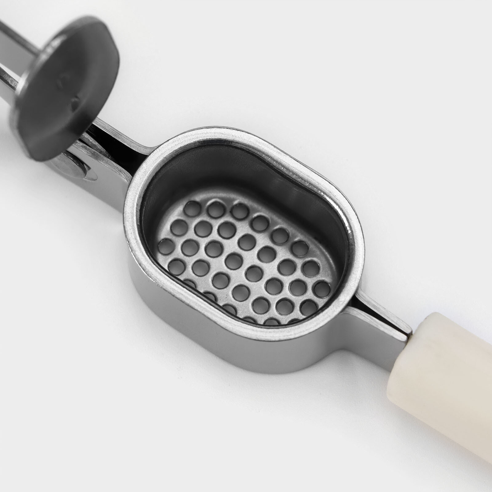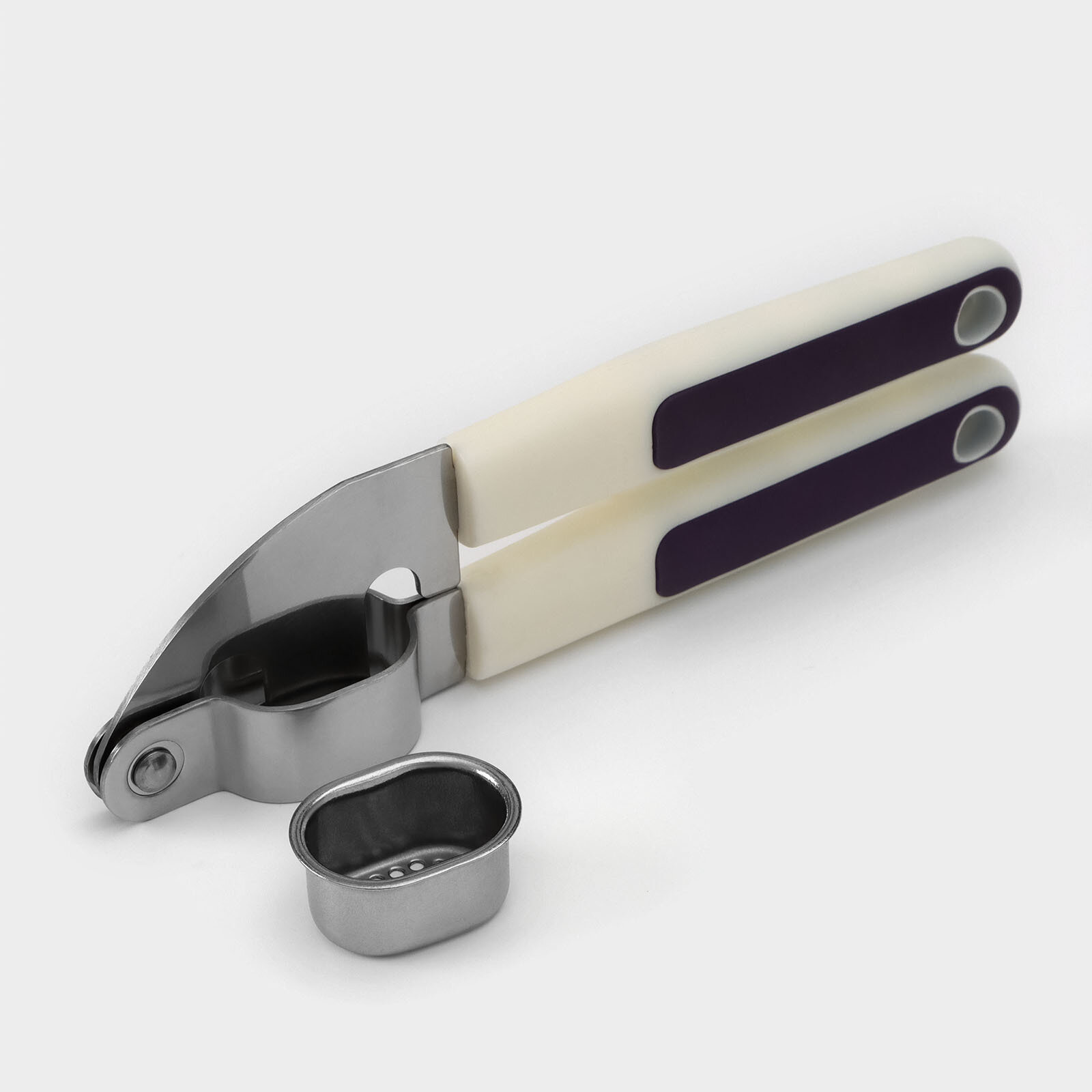 Пресс для чеснока предназначен для измельчения чеснока. Использование этого приспособления позволит вам сэкономить время и силы. Изделие имеет удобную рукоятку с противоскользящей вставкой и петлю для подвешивания.