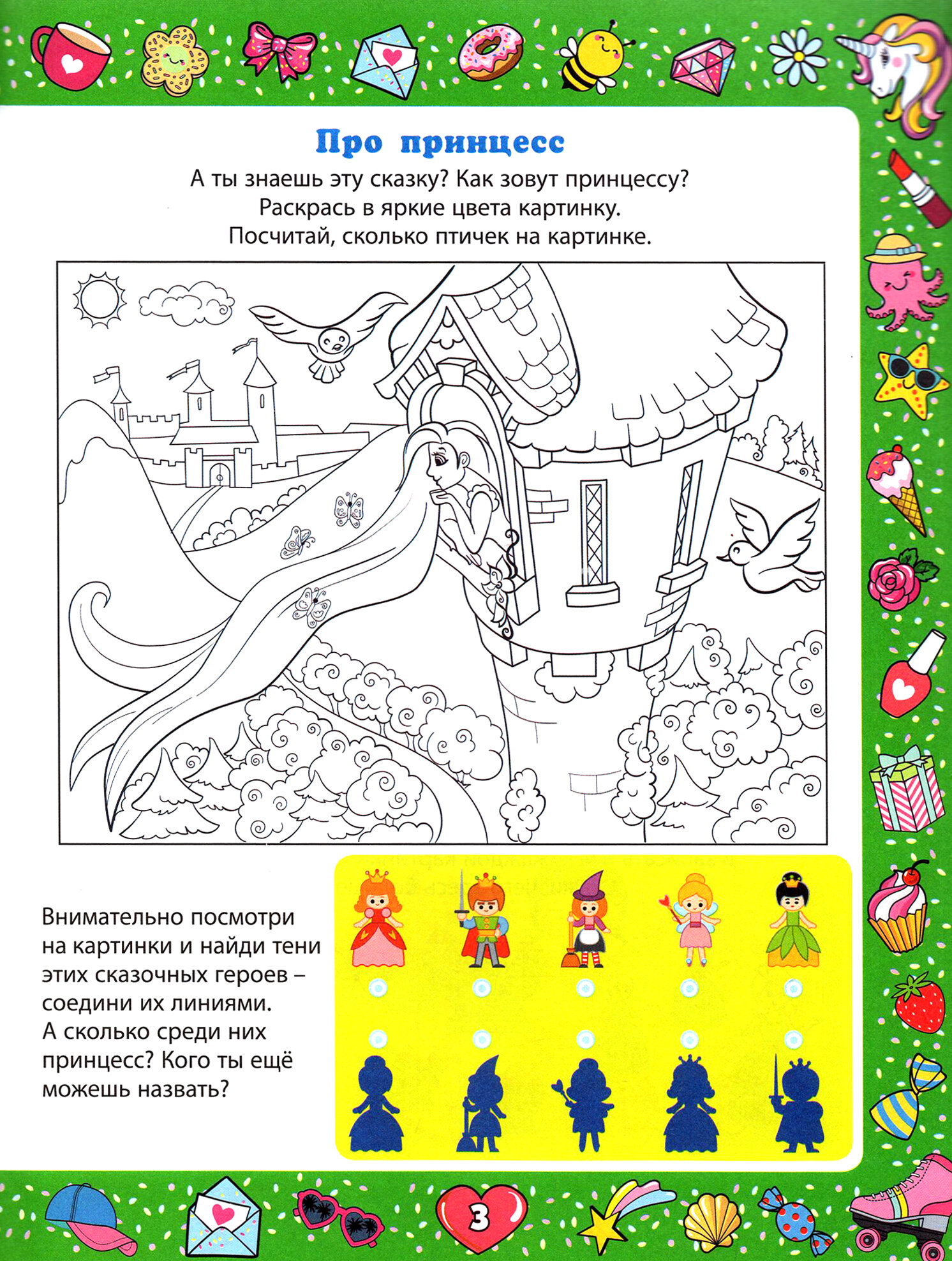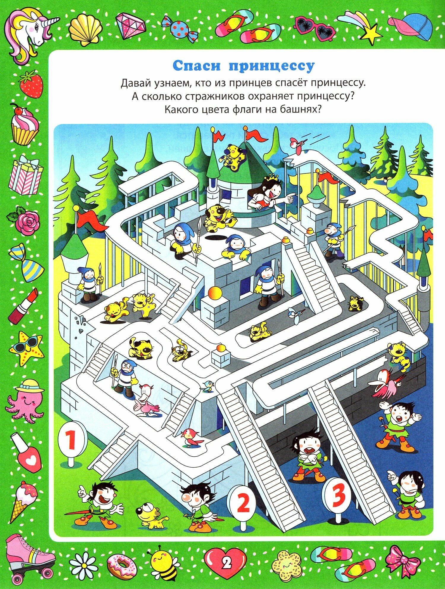 Ваша маленькая дочка, наверняка, мечтает хоть немного времени побыть прекрасной принцессой или сказочной феей, храброй супердевочкой или модной девчонкой, погулять по волшебному лесу и покататься на симпатичном единороге. В нашей красочной книжке, выполняя самые разные несложные и увлекательные задания, например лабиринты и логические задачки, она окунётся в сказочный, а также и в реальный, окружающий её мир. Эта занимательная книга сделана специально для девочек. Она поможет вашей дочке с самого раннего возраста в развитии внимания и логики, мелкой моторики, расширит её кругозор. На страницах нашей книжки девочка сможет даже порисовать. Так ваш ребёнок весело и с пользой проведёт время!