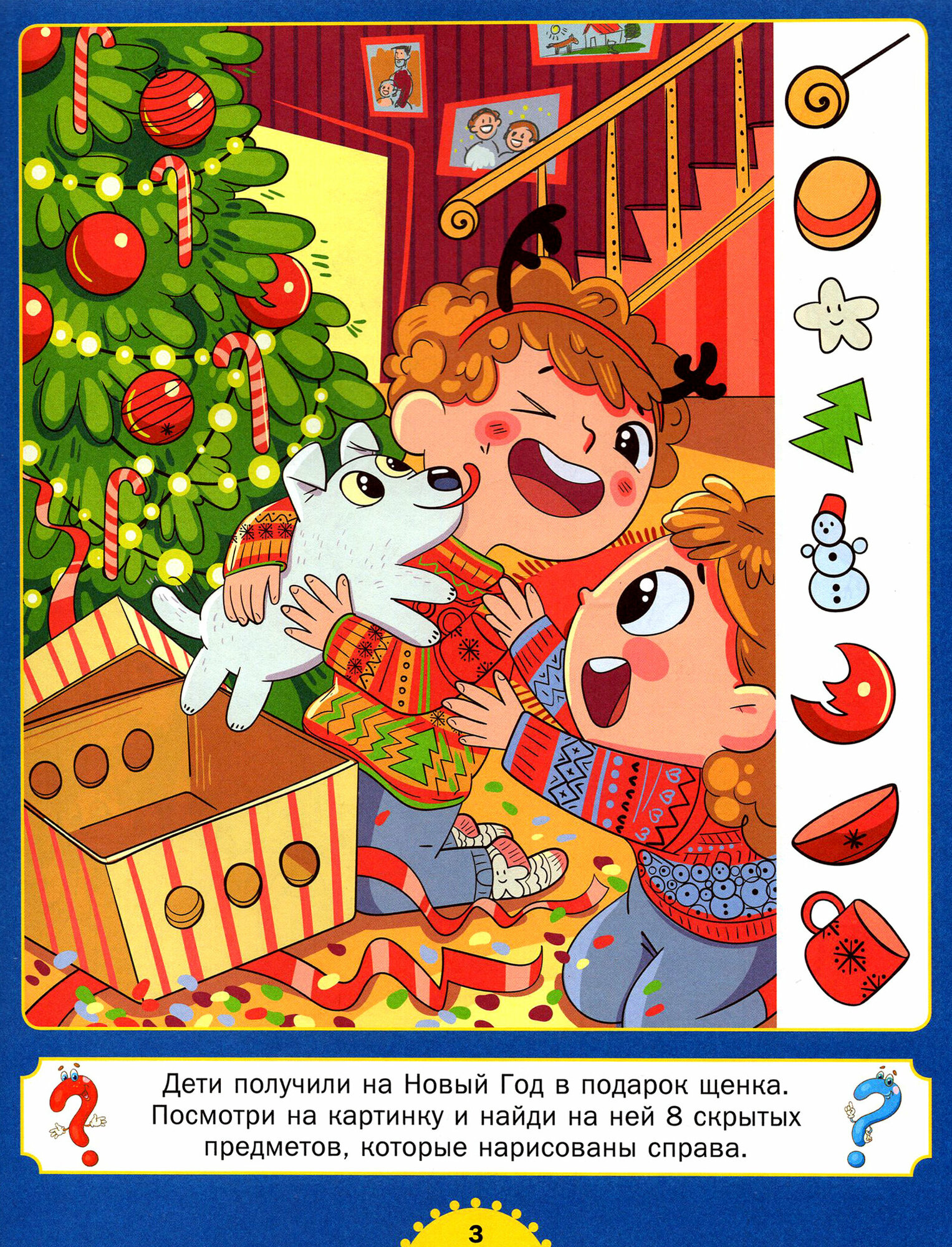 Перед вами книжка с яркими весёлыми картинками, которые ваш ребёнок будет с интересом разглядывать и находить на них скрытые предметы. Такое занятие поможет ему в развитии наблюдательности и внимания, он увлекательно и с пользой проведёт время. А отвечая на несложные вопросы, он научится простому счёту, логически мыслить, сможет различать цвета и формы предметов. Подарите вашему ребёнку красочную книгу-игру!