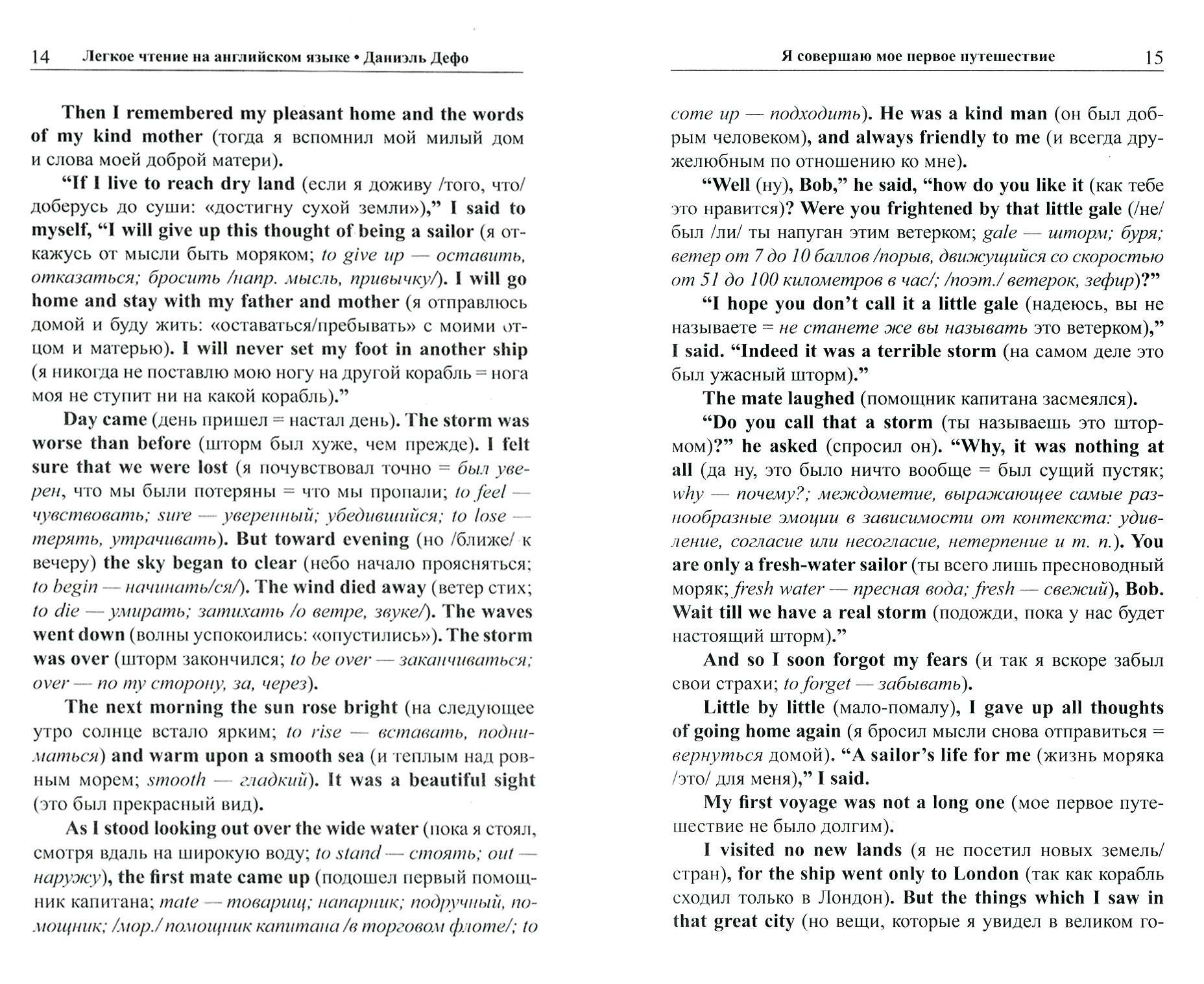 Захватывающая история приключений Робинзона Крузо адаптирована в настоящем издании по методу Ильи Франка: снабжена дословным переводом на русский язык и необходимым лексикограмматическим комментарием.
